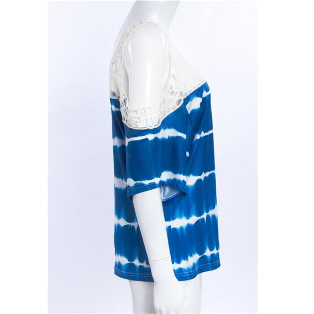 Style Women Sexy Blouses Off Shoulder Print Short Sleeve Lace Strapless Loose Beach Blouse Tops Shirt IMY66