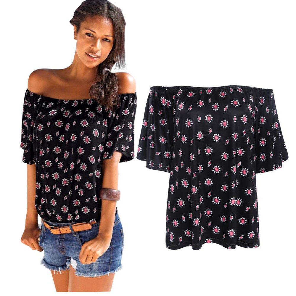 Style Women Sexy Off Shoulder Tops Ladies Short Sleeve Floral Printing Blouse Shirt Blusas Feminino IMY66