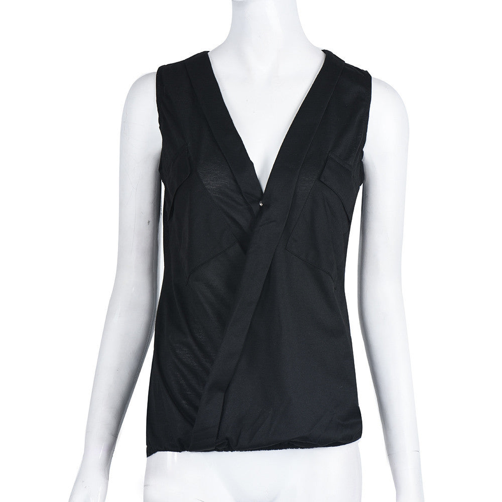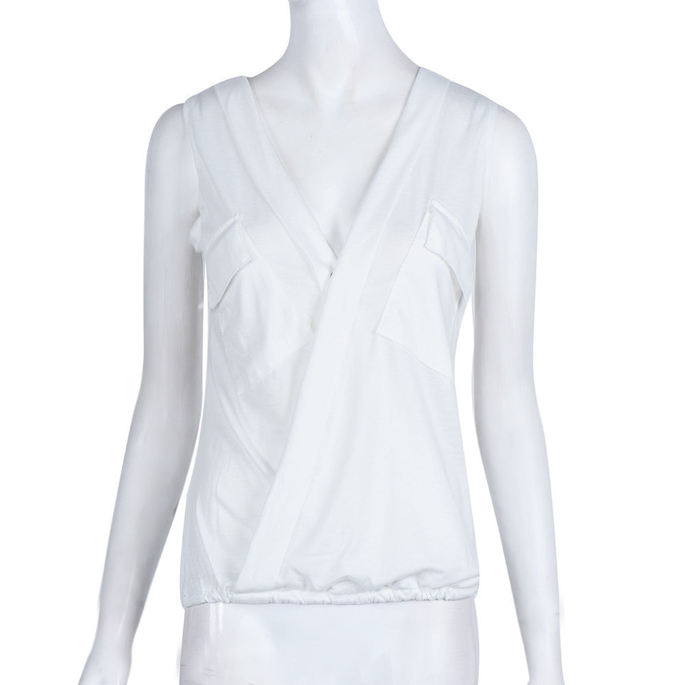 Style Womens Sexy Sleeveless V Neck Tops Vest Casual Pockets Shirts Beach Top Blouse blusa feminino IMY66