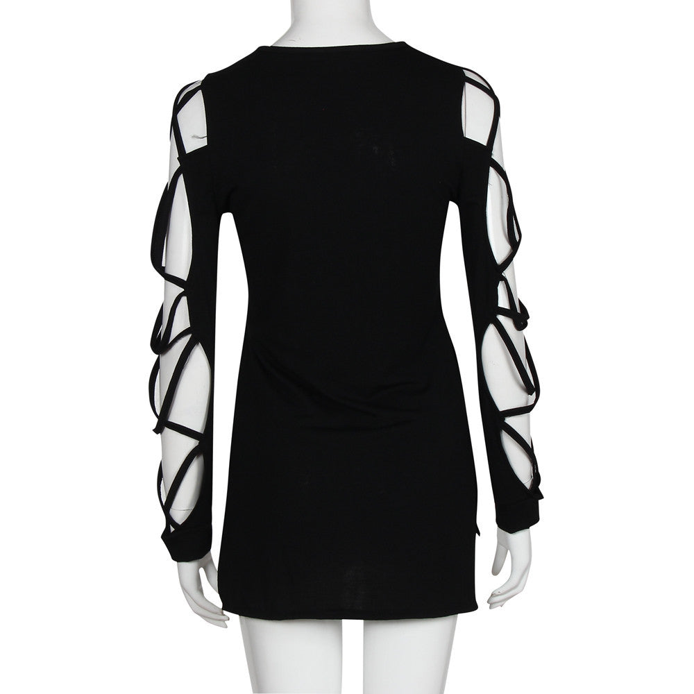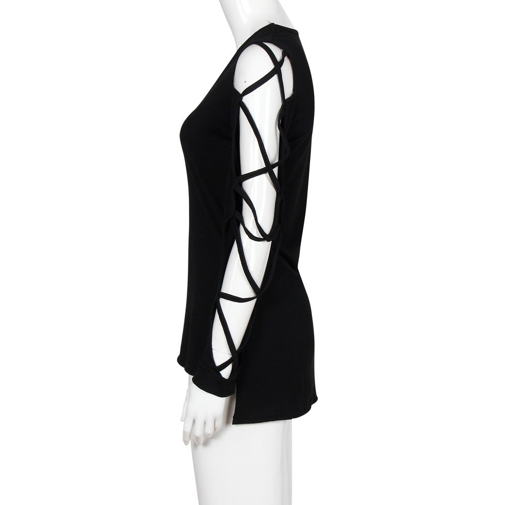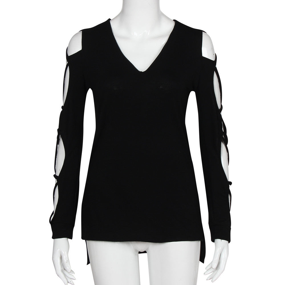 Stylish Deep V Hollow Cut Out Sleeve Sexy Women T-Shirts Short Front And Long Back Tops Tees Split Cool Women T-Shirt Plus Size IMY66