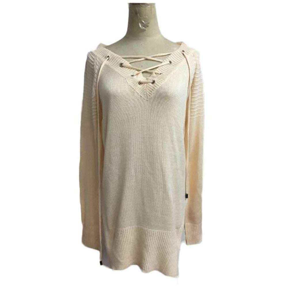 Sweater Women Casual Long Sleeve Bandage Long Sweater Tops Knitted V-Neck Loose Pullovers pull femme IMY66