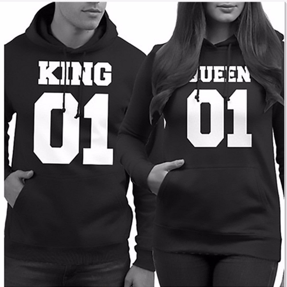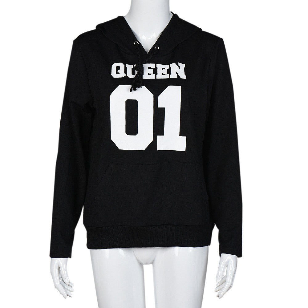 T-Shirts For Couple Lover Men Women QUEEN 01 Letter Long Sleeve Hooded Sweater Tops Tee Shirt camisetas y tops IMY66