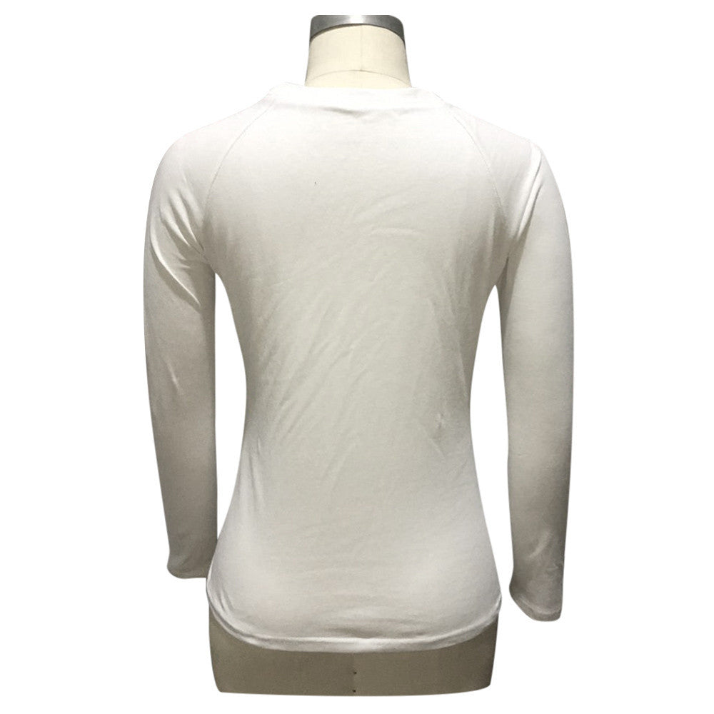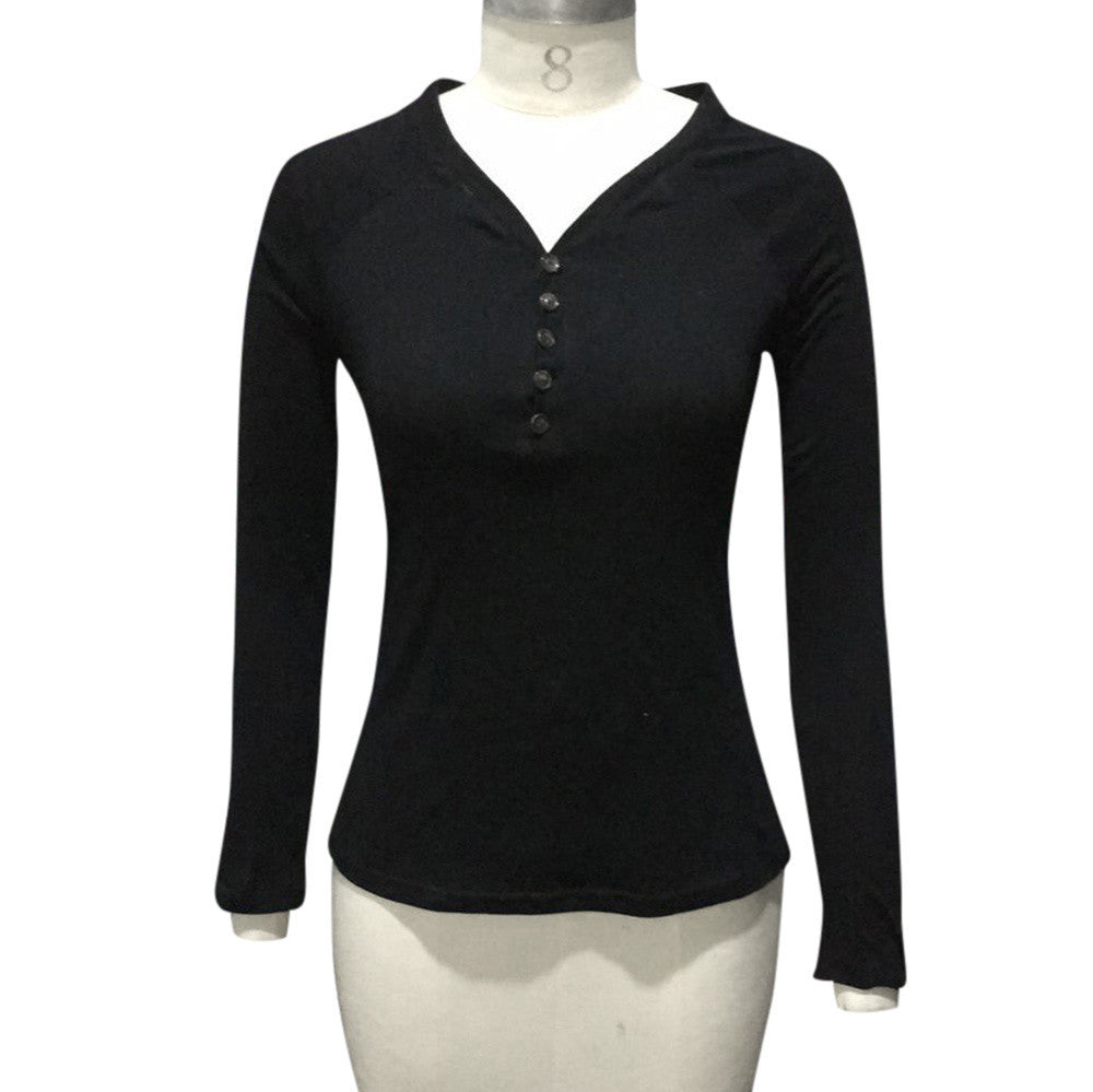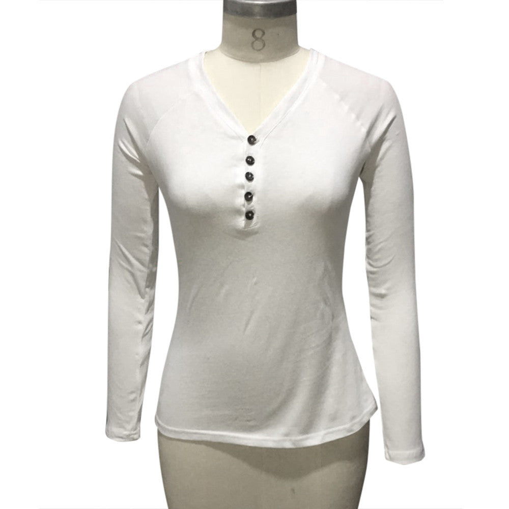T-Shirts For Women Basic Casual V Neck Long Sleeve Button Slim Tops tee shirt femme camisetas mujer IMY66