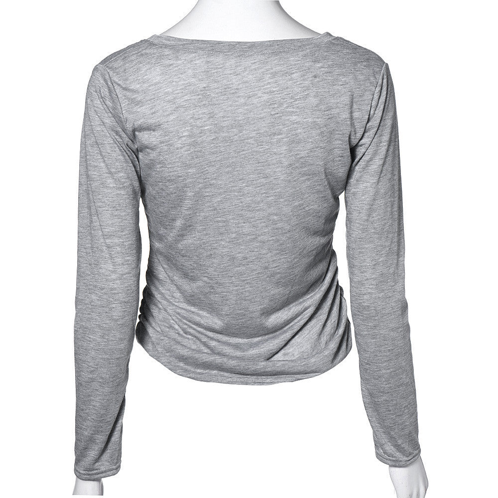 T-shirts For Women Casual Slim Bodycon Long Sleeve T-Shirt Tops Pullover Cotton blusas feminino Gray Color IMY66