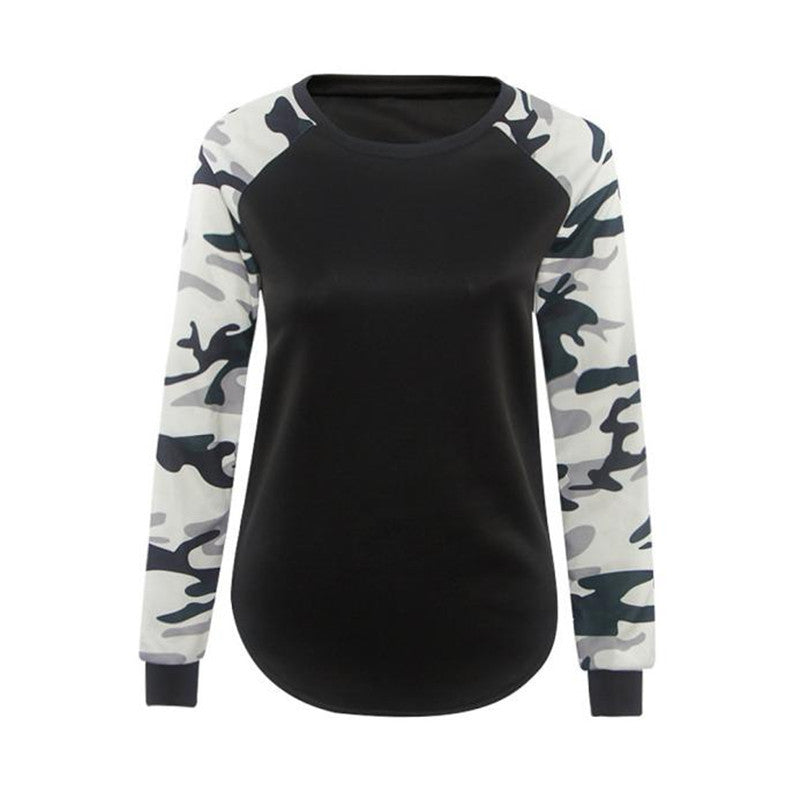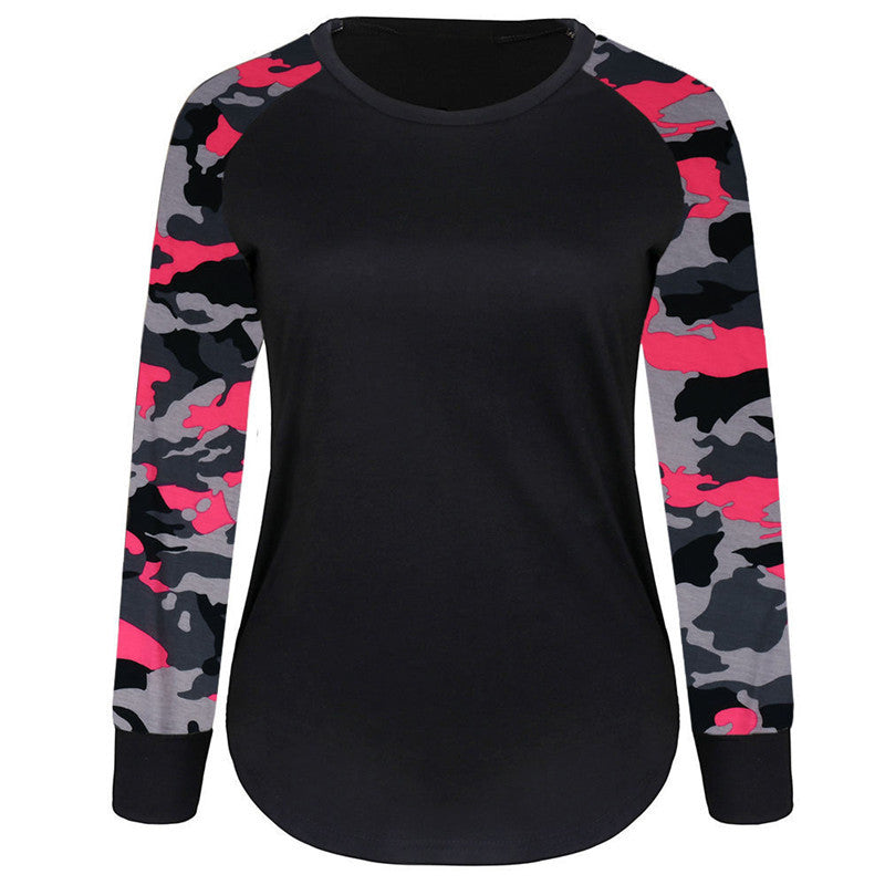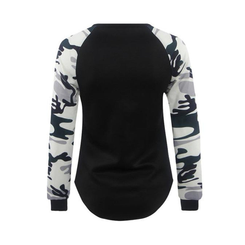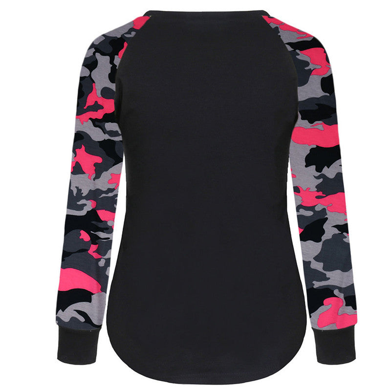 T-Shirts For Women Casual Splice Camoufla Print Long Sleeve Tops Tee Shirt Pullover camisetas y tops IMY66