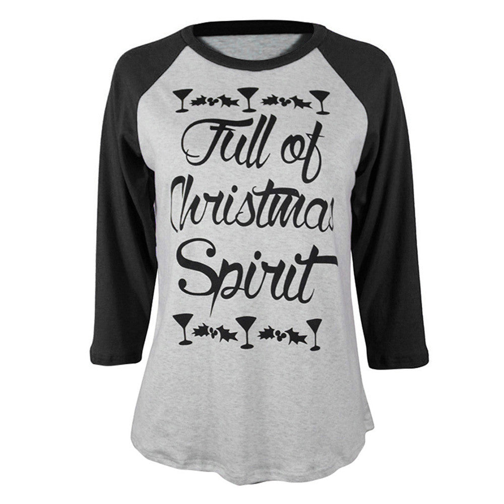 T-Shirts For Women Full Of Spirit Printed Splicing Tee Shirt femme Tops Camisetas Feminina IMY66