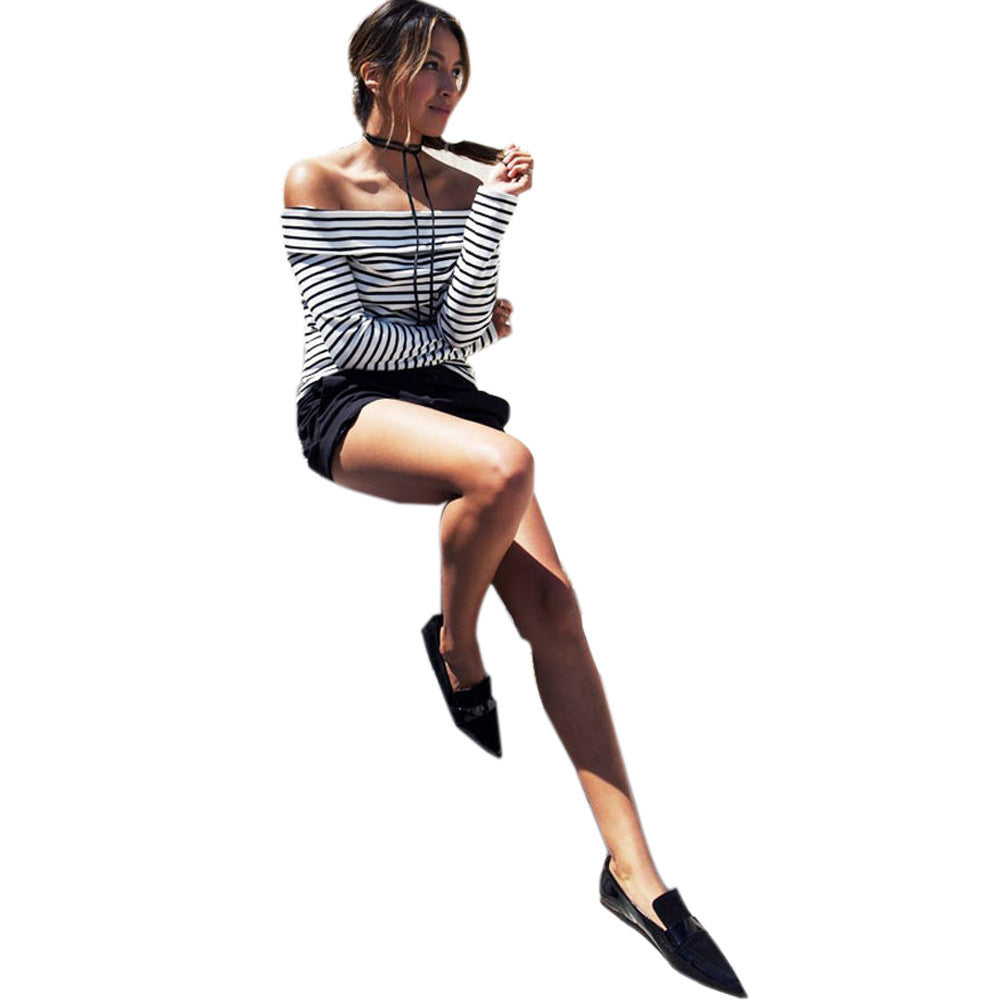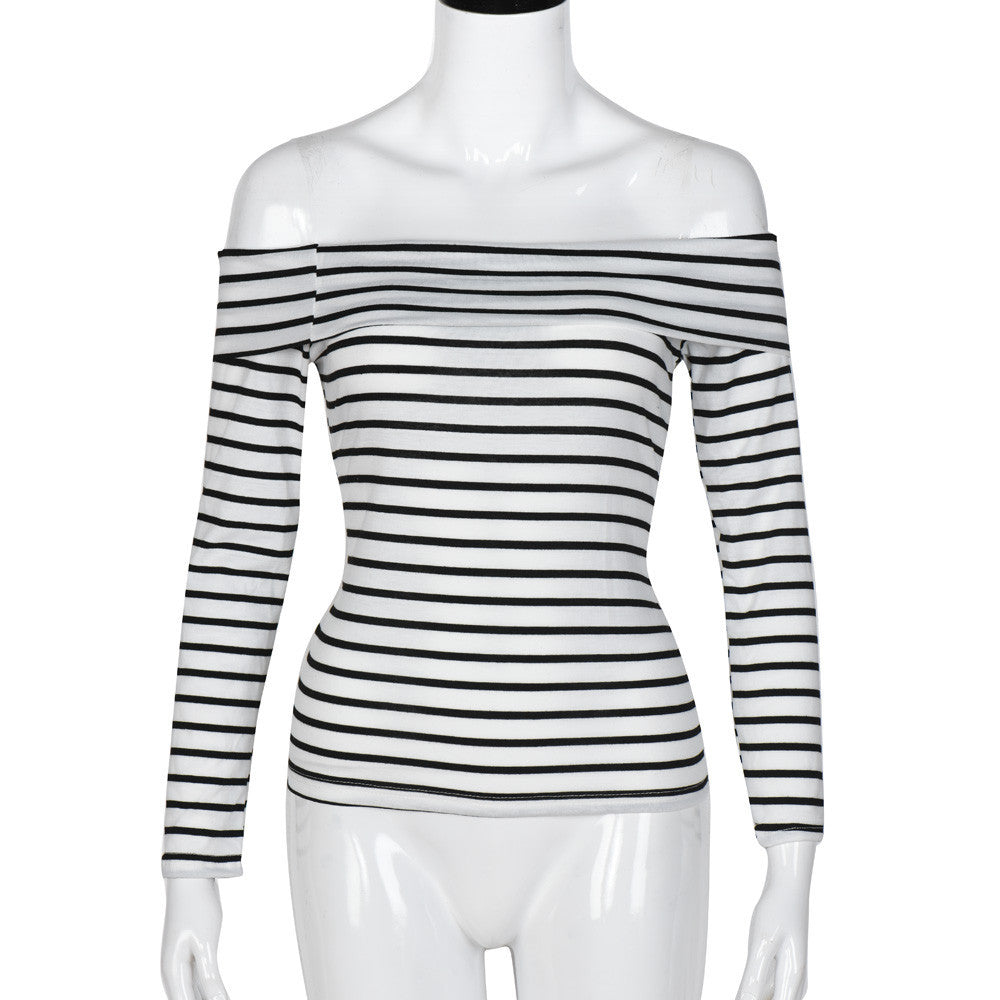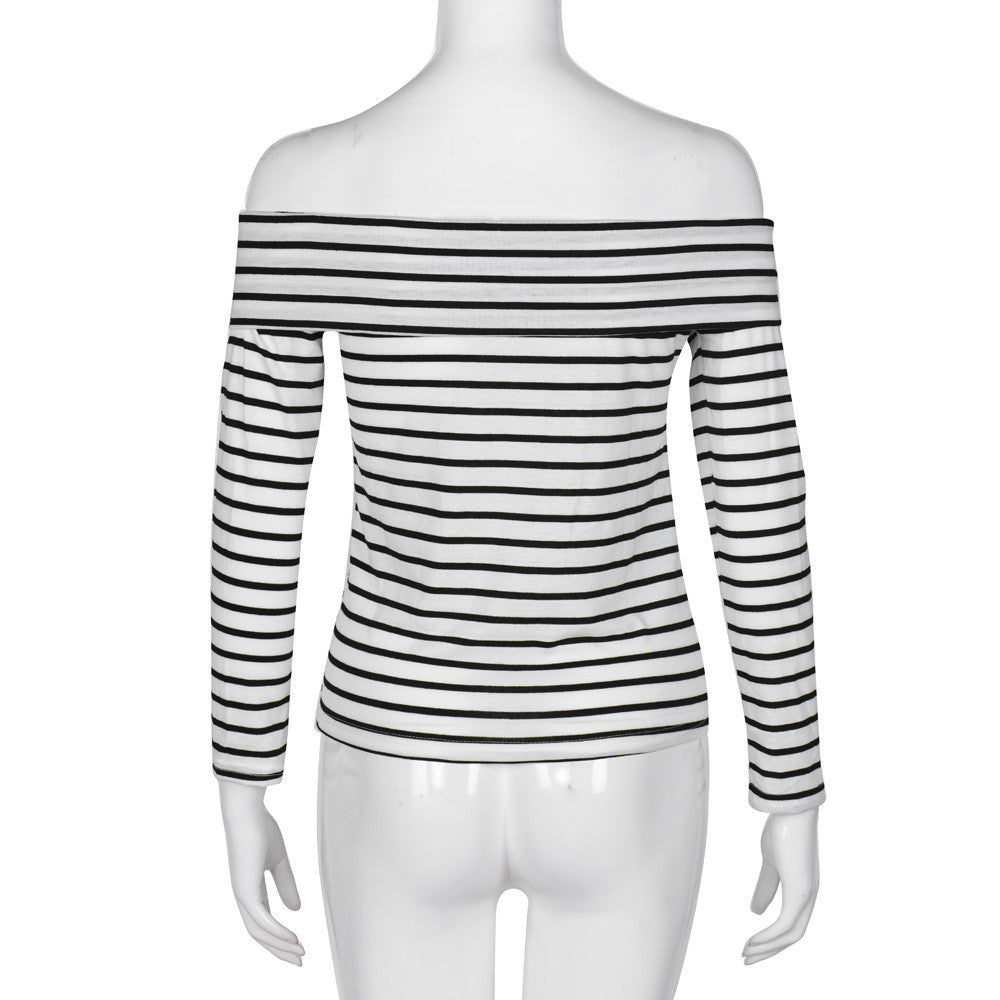 T-Shirts For Women Ladies Sexy Off Shoulder Striped Long Sleeve Loose Tops T-Shirt camiseta feminina IMY66