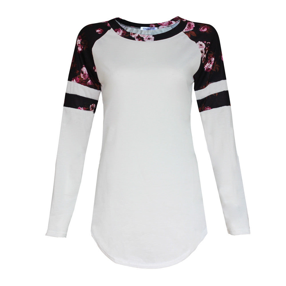 Tee Shirt femme Women Floral Splice Printed Long Sleeve Round Neck Pullover T-Shirt Tops camisetas y tops IMY66