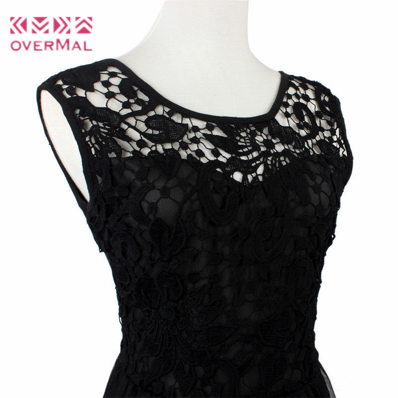 Top Women Casual Sleeveless Lace Crochet Backless Ball Gown Girl Elegant Black Dress IMY66
