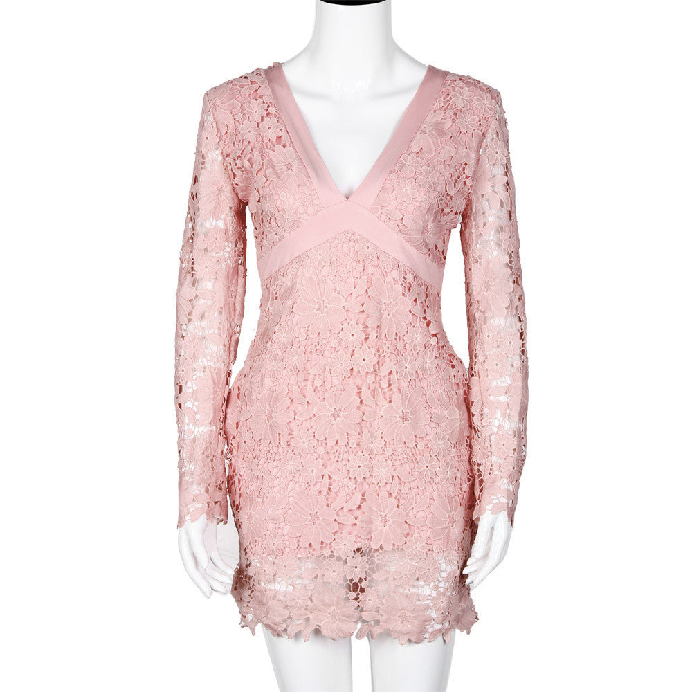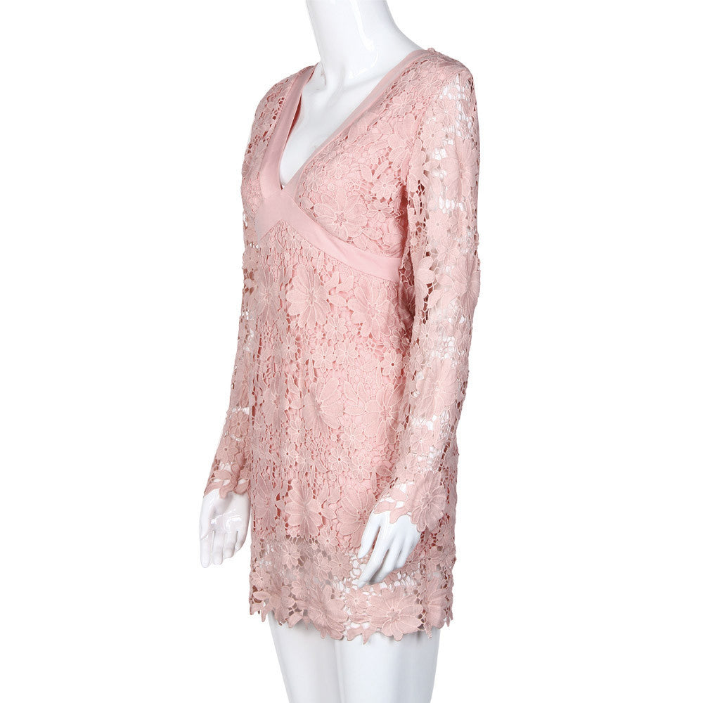 Vestidos Women Casual Lace Dress V-Neck Sleeve Pink Evening Party Mini Dresses Vestido de festa IMY66