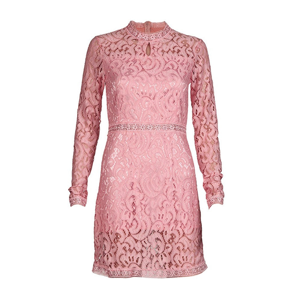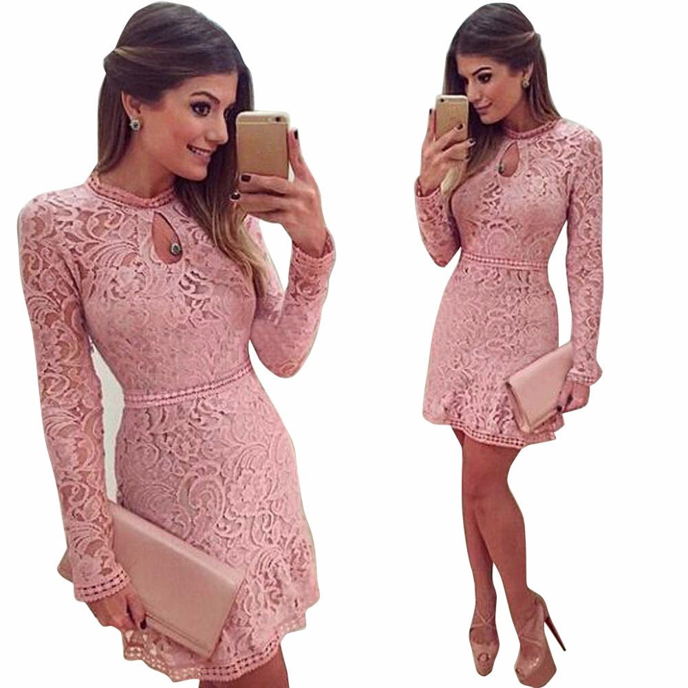 Vestidos Women Sexy Lace Club Dress O-Neck Sleeve Pink Evening Party Dresses Vestido de festa Brasil Trend IMY66