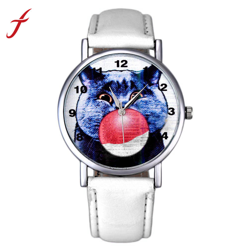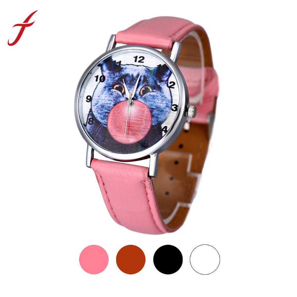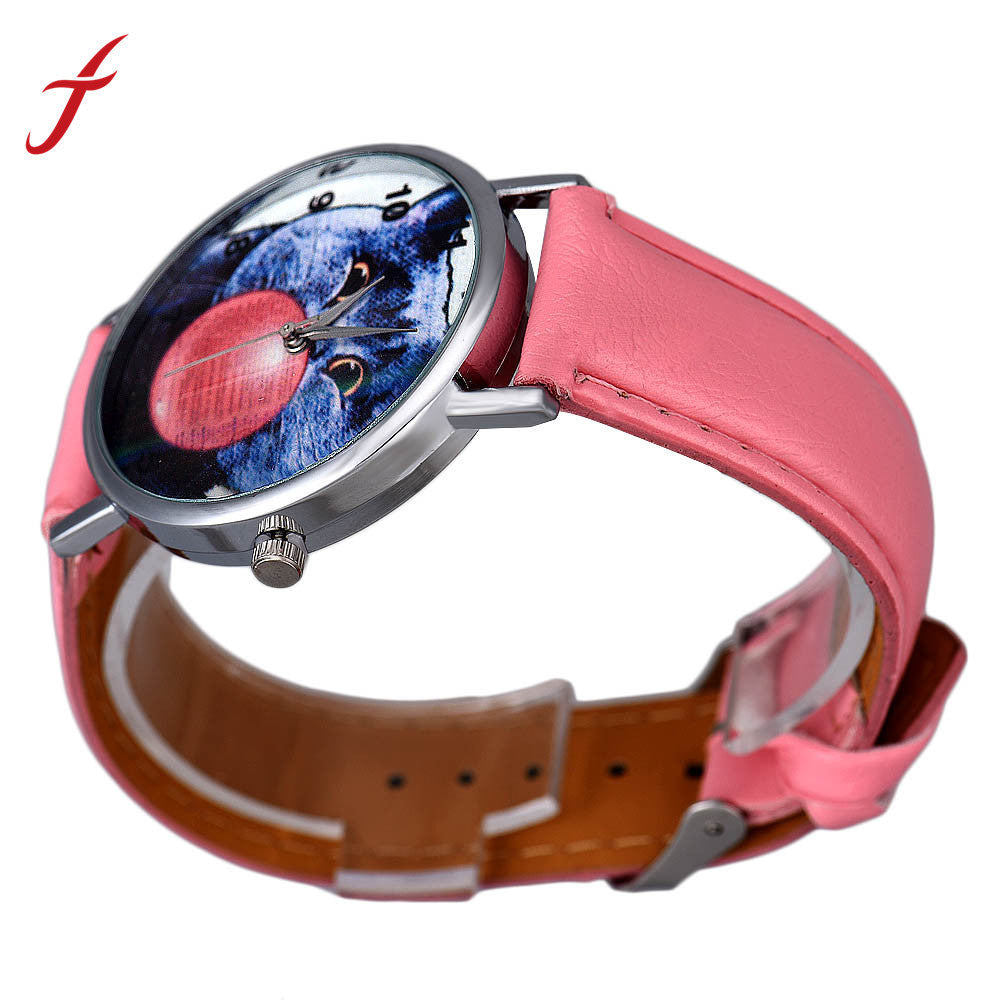 Vogue PU Leather Band Casual Cartoon Balloon Cat Pattern Analog Quartz Wrist Watch For Watch Relogio IMY66