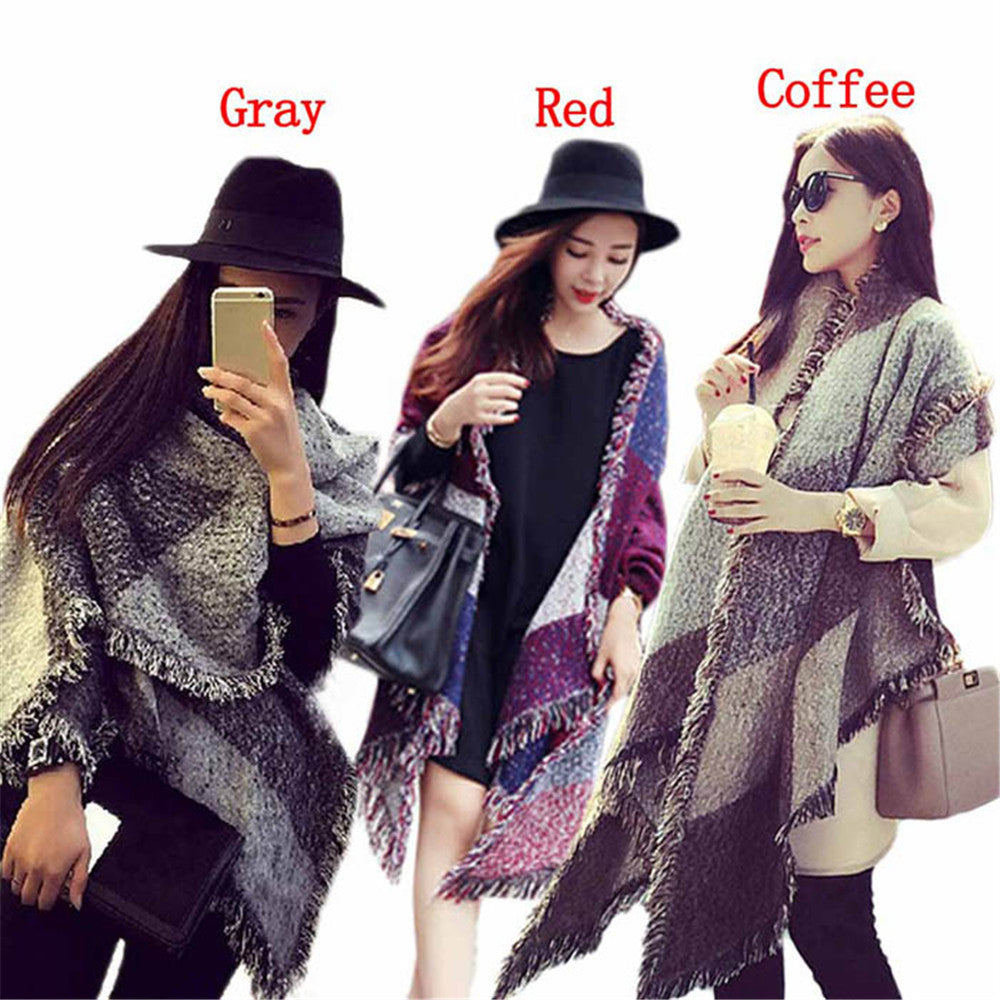 Warm Scarf Women Faux Cashmere Blanket Scarf Large Tartan Tassels Shawls And Scarves Stole Plaid Woollen Cloth IMY66