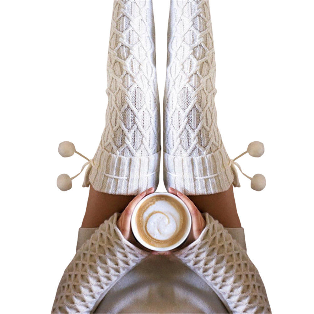 Warm Socking For Women Balls Knitted Long Boot Socks Over Knee Thigh High Stocking Over Knee High Socks korean IMY66