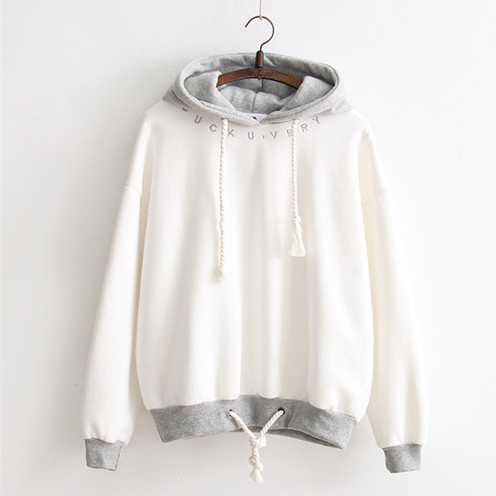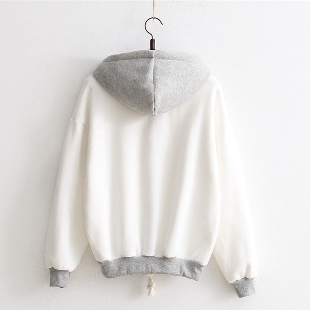 Warm Tee Shirts Sweatshirt For Women Plus Velvet Long Sleeve Tops Casual Patchwork Hoodies Hooded camisetas y top IMY66