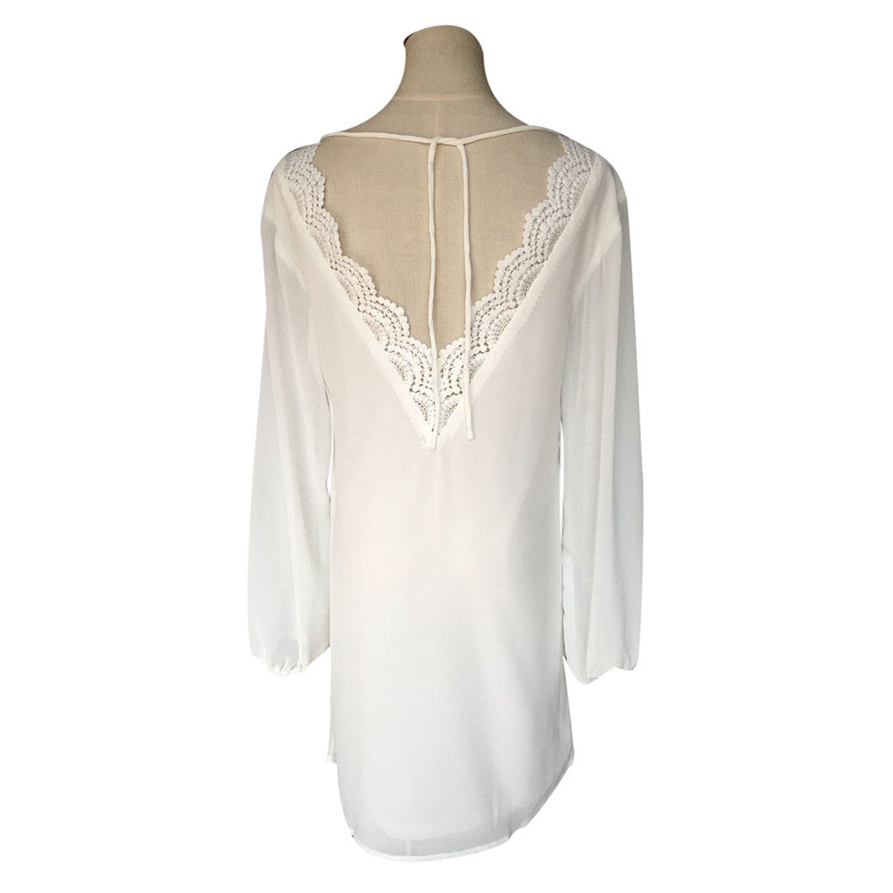 White Chiffon Dress Dresses Boho Long Sleeve Sexy Backless Women Dress Straight Casual Beach Dress Vestidos IMY66