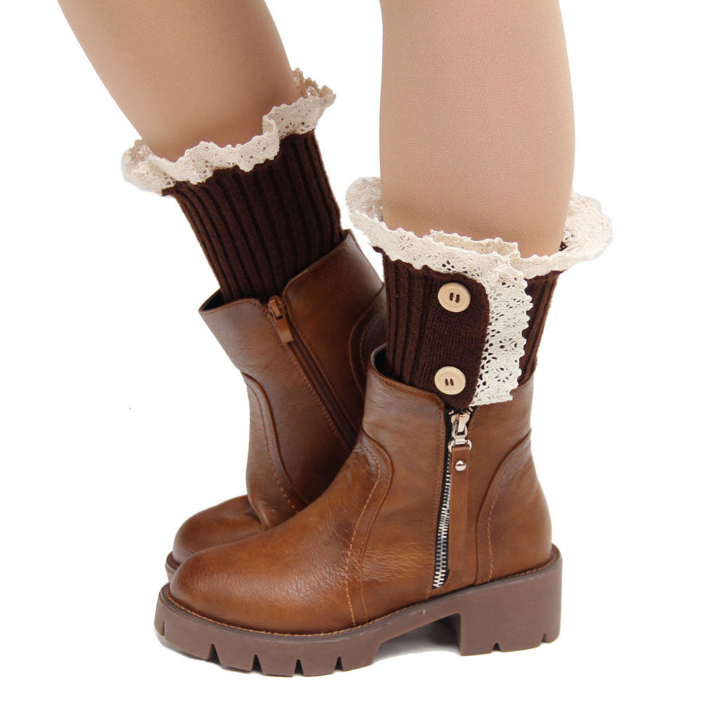 Woman Three Button Short Knitted Lace Crochet Button Leg Warmers Socks Boot Cover piernas calcetines mujer IMY66