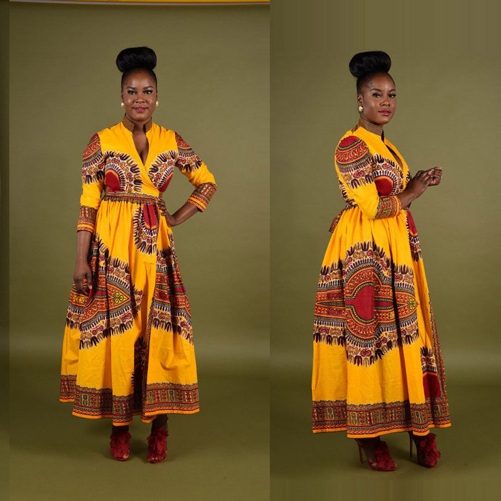 Women African Print Long Dress Ladies Sexy Maxi Dresses Casual Straight Long Sleeve Dresses vestidos femininos IMY66