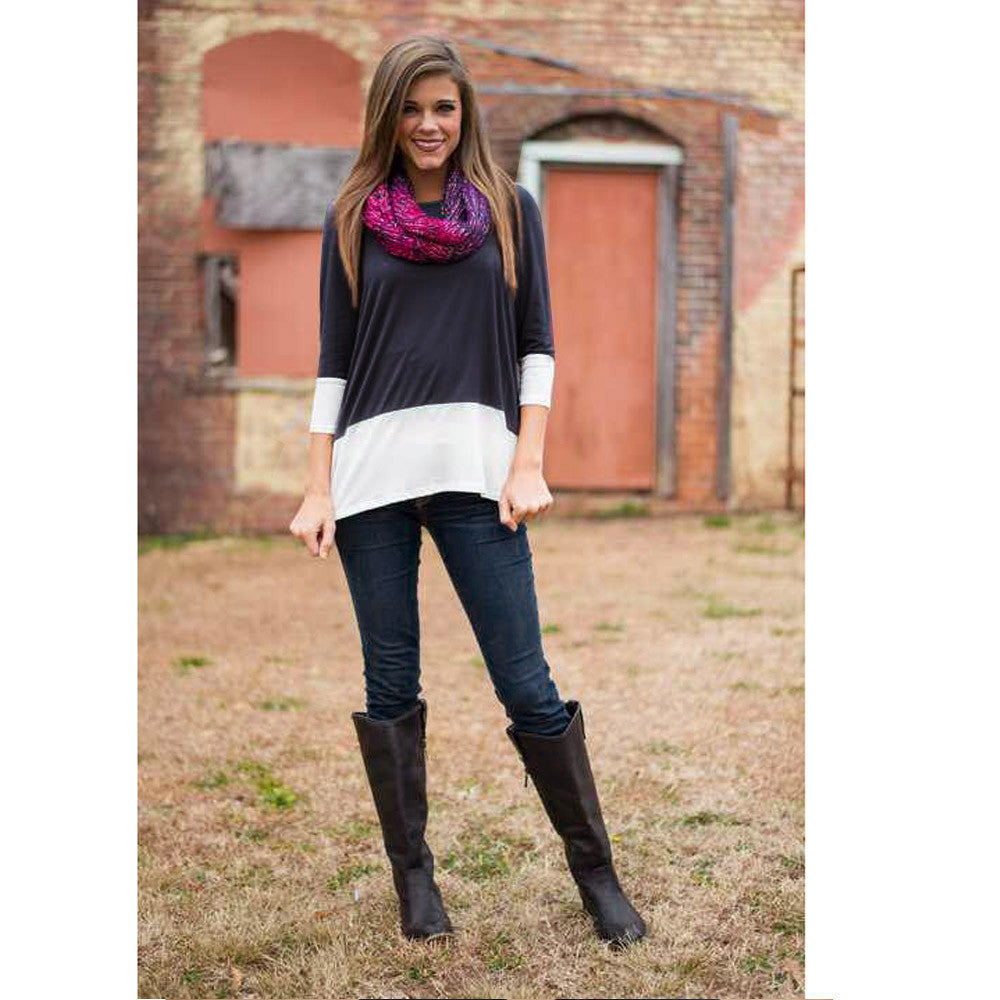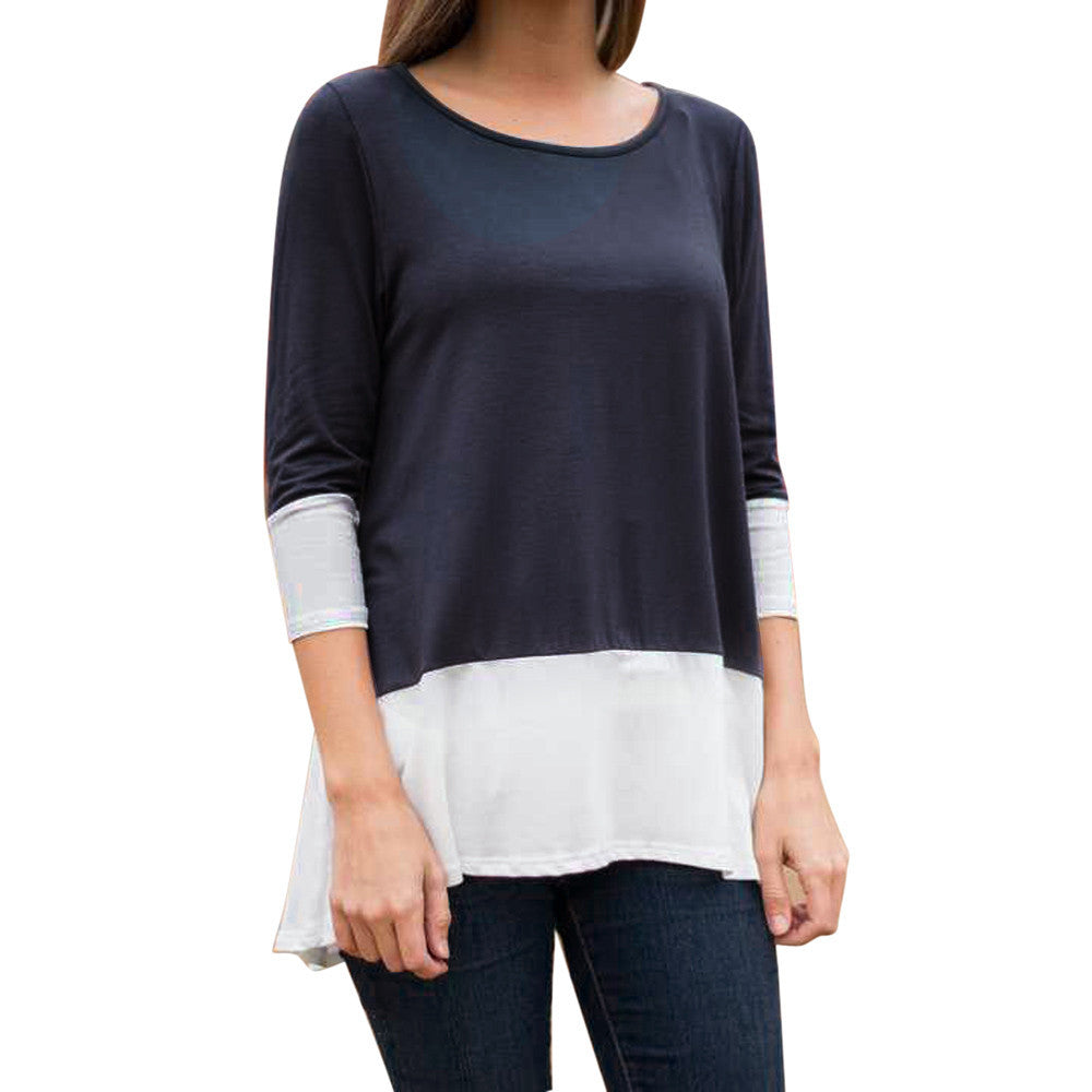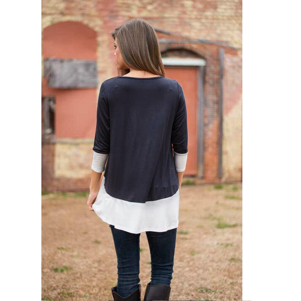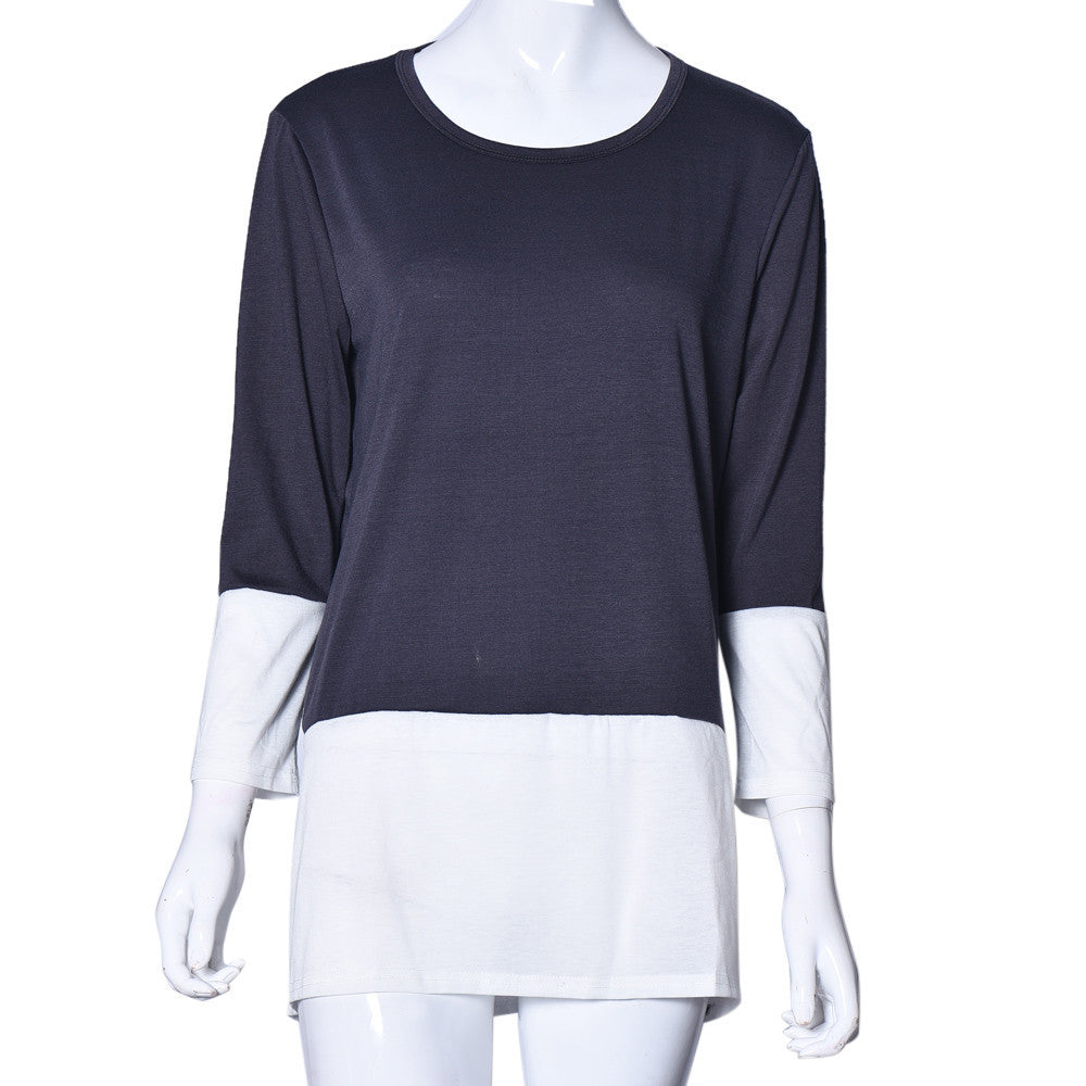Women Black White Patchwork Three Quarter Sleeve Casual Loose Long Tee Shirts Dress Tops Shirt blusa feminina IMY66