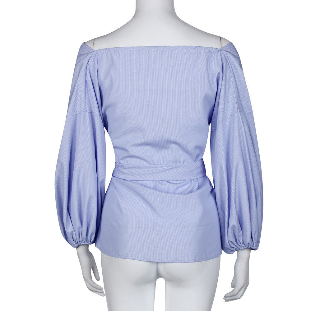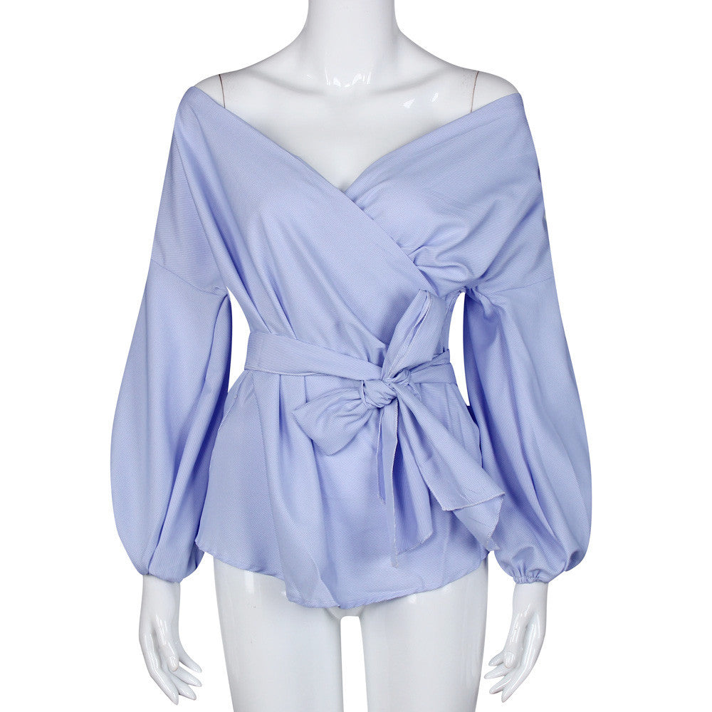 Women Blouse Sexy Off Shoulder Big Bow-Knot Bandage Blouse Party Ladies Casual Tops Shirts blusas femininas IMY66
