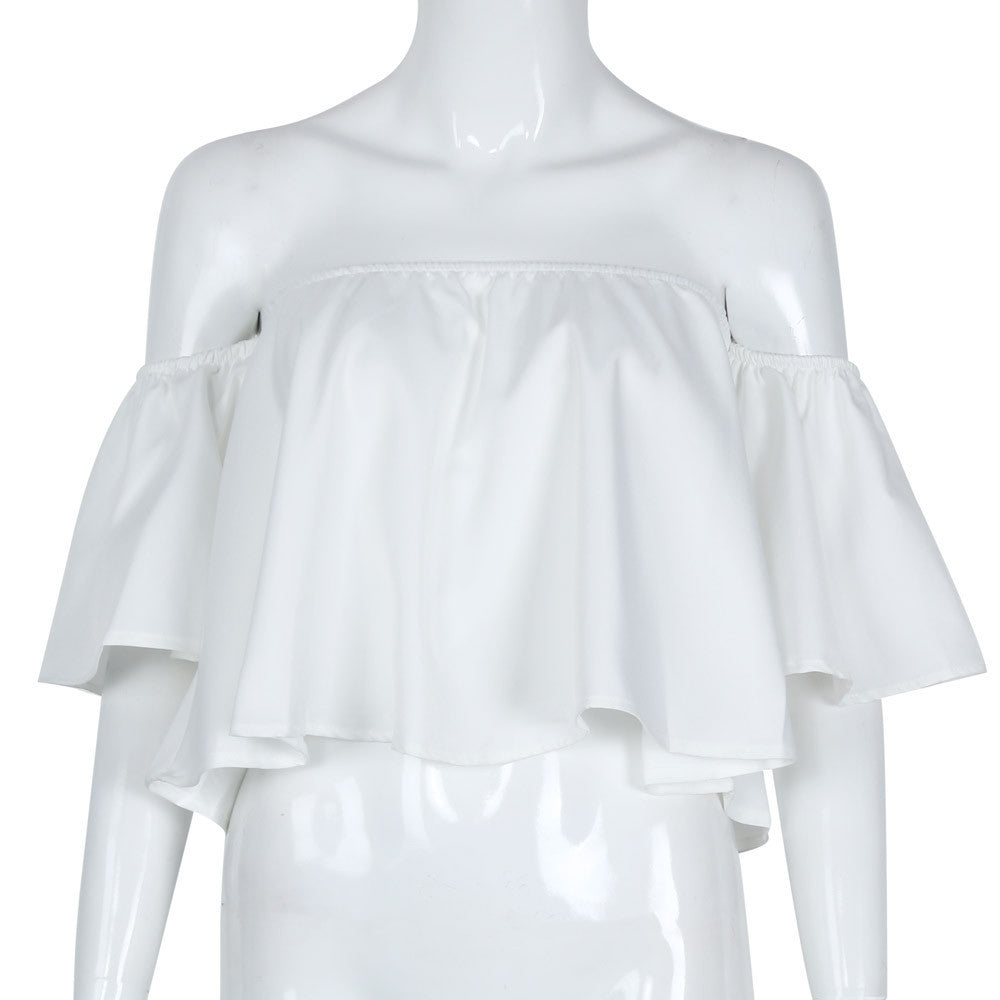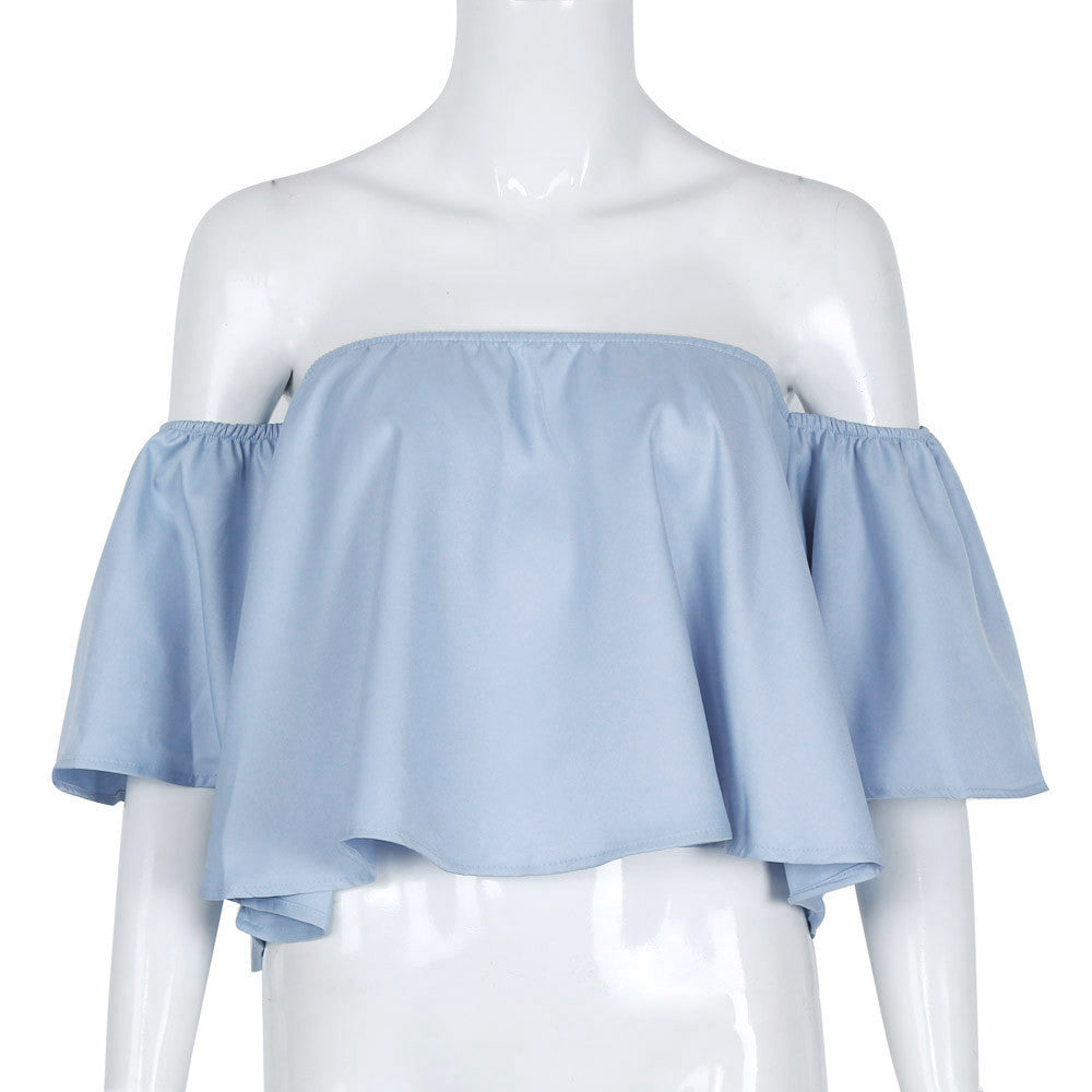 Women Blouse Smock Tops Off Shoulder Cute Brief Ruffles PETITE Structured Bardot Tops Short Blusas Feminino IMY66