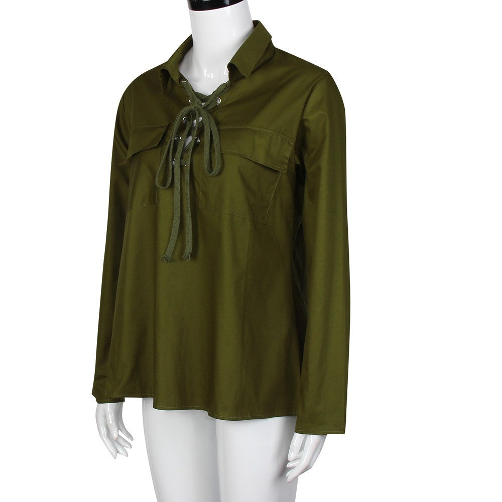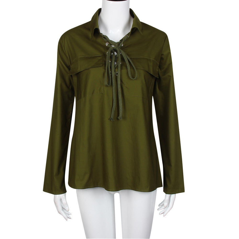 Women Blouses Sexy Deep V Neck Lace Up Tops Casual Long Sleeve Bandage Blouse Shirt blusas femininas IMY66