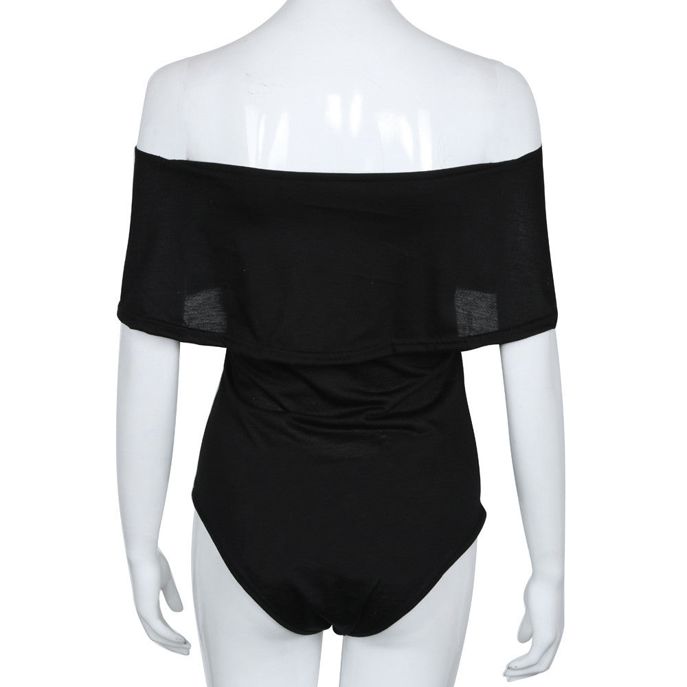 Women Bodysuit Rompers Bardot Off Shoulder Sleeveless Frill Solid Bodysuit Leotard Tops Basic Bodysuit macacao feminino IMY66