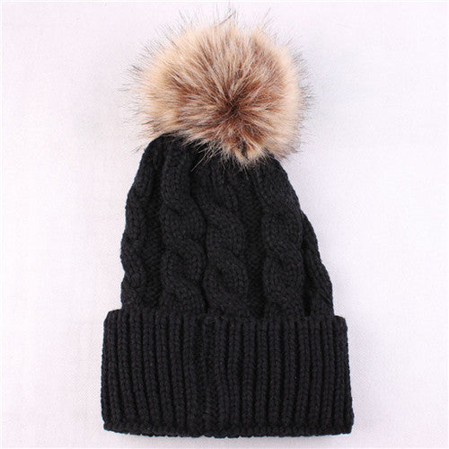 Women Caps Beanies Keep Warm Hats Knitted Wool Fur ball Pom Poms Hemming Hat Skullies Bonnet female Caps IMY66