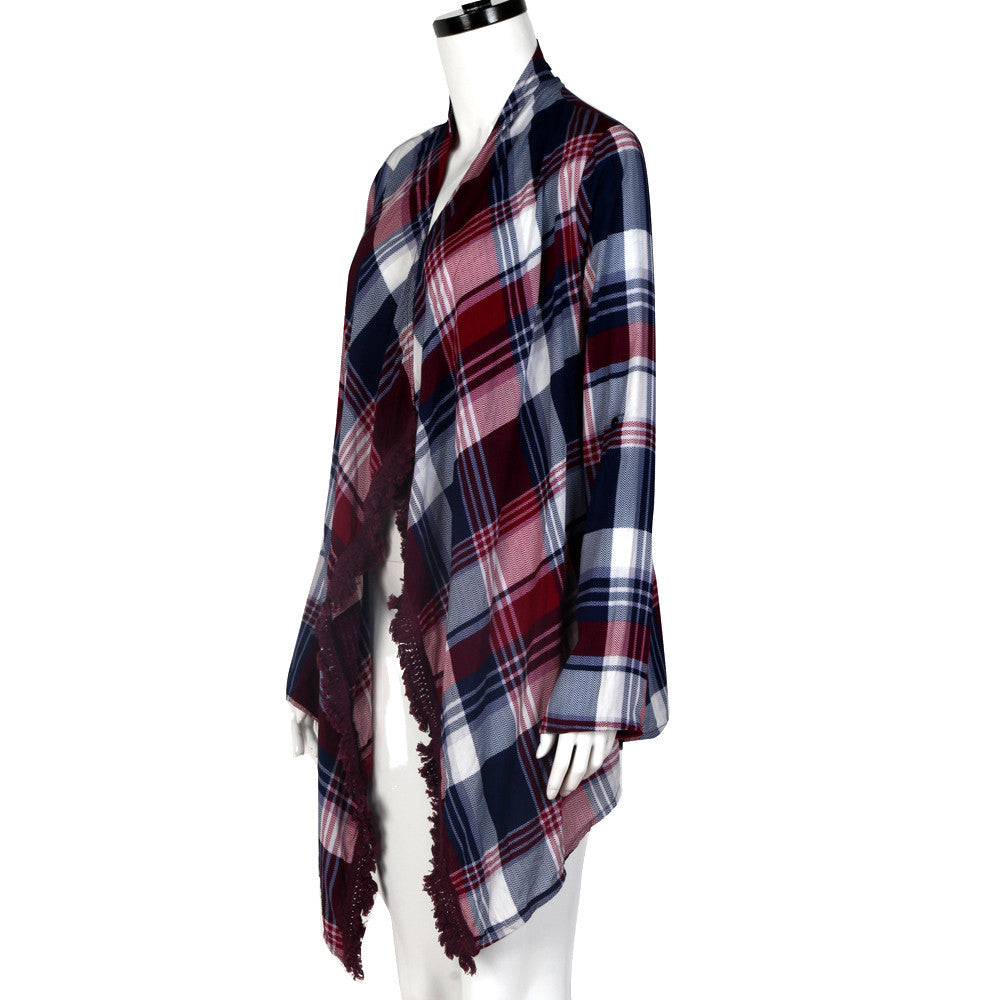 Women Cardigan Casual Plaid Print Loose Long Sleeve Tops Outwear Jacket Coat Open Stitch Blusa Feminino IMY66