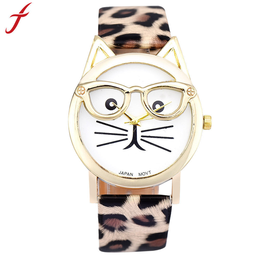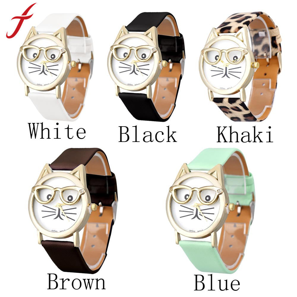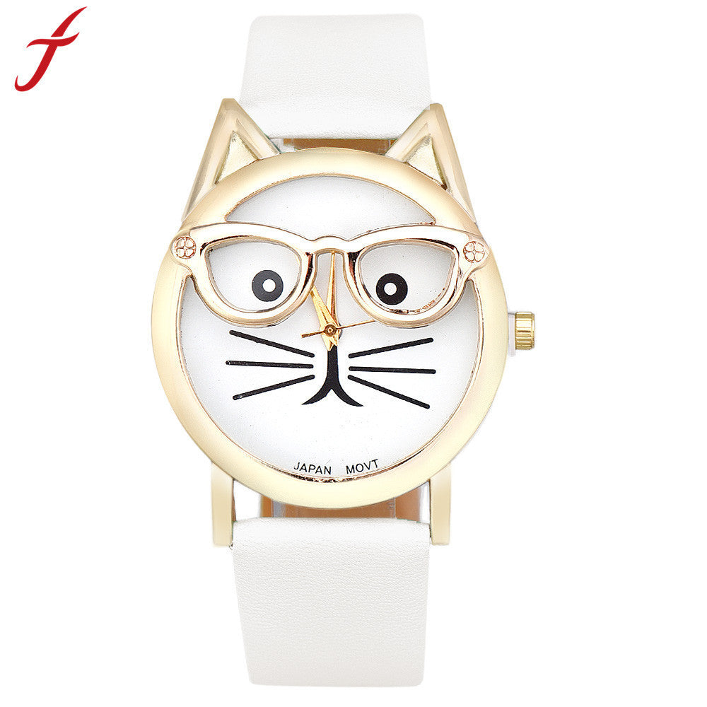 Women Cartoon Watches Ladies 3D Glasses Cat Girl Dial Quartz Wrist Watch montre femme relogio feminino Clock Hours IMY66