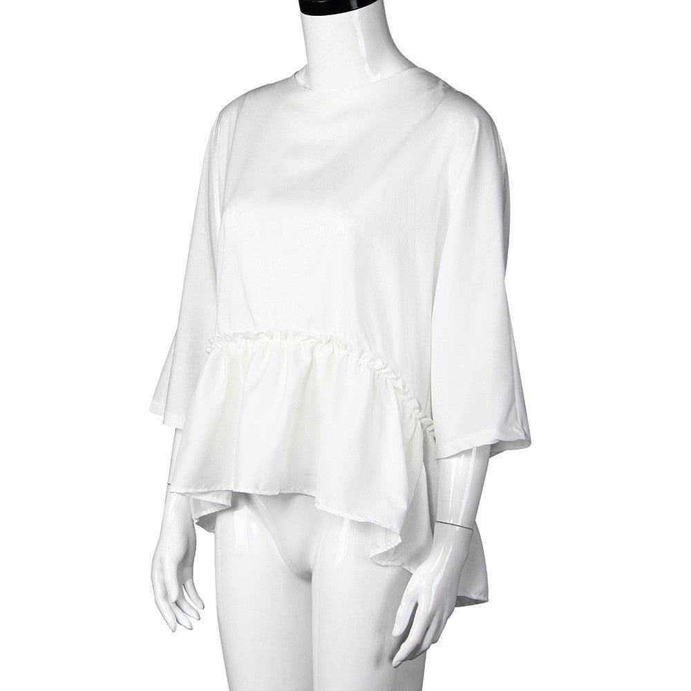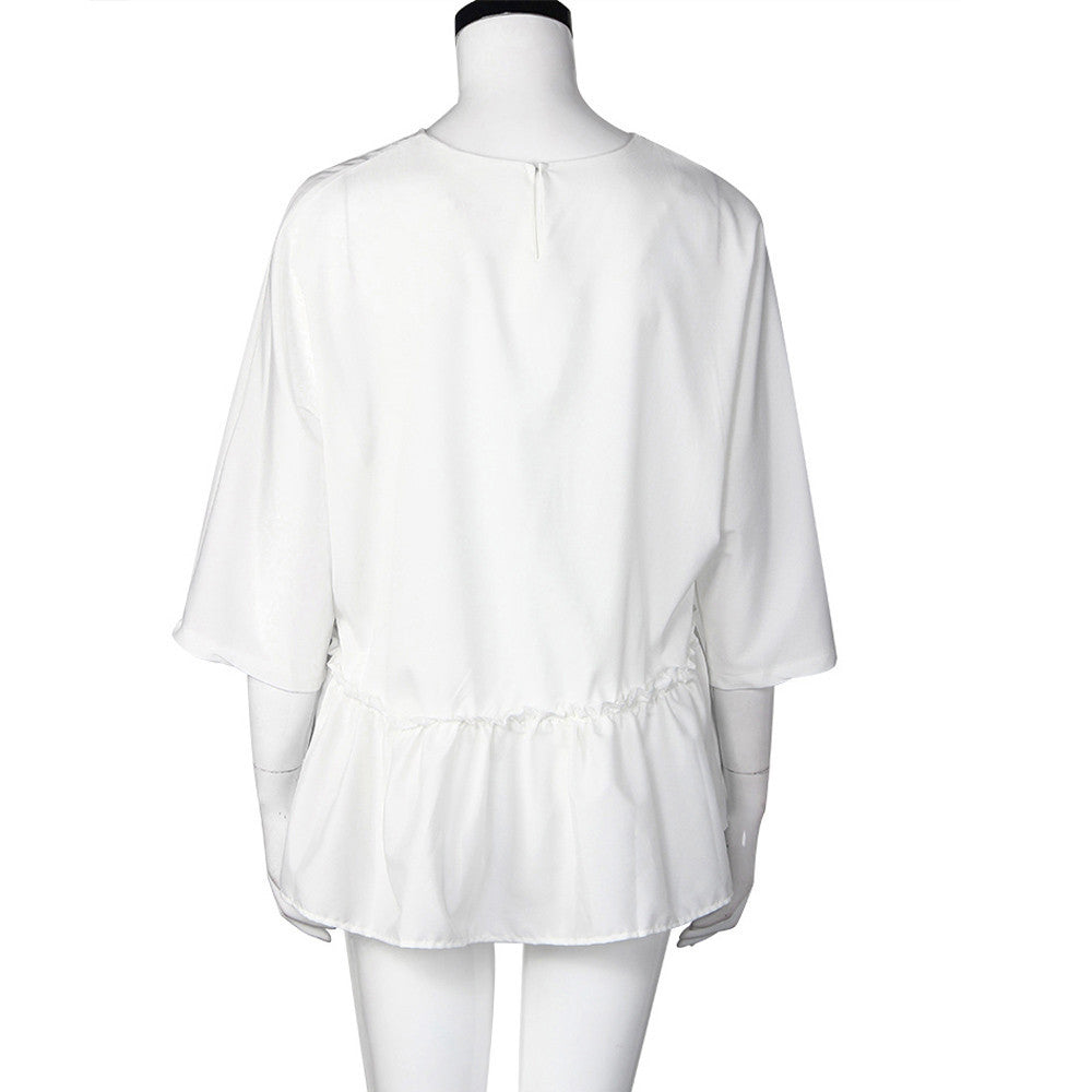 Women Casual Chiffon Blouse Round Neck Half Sleeves Ruffles Hem White Tops Blouse Shirts blusas femininas IMY66