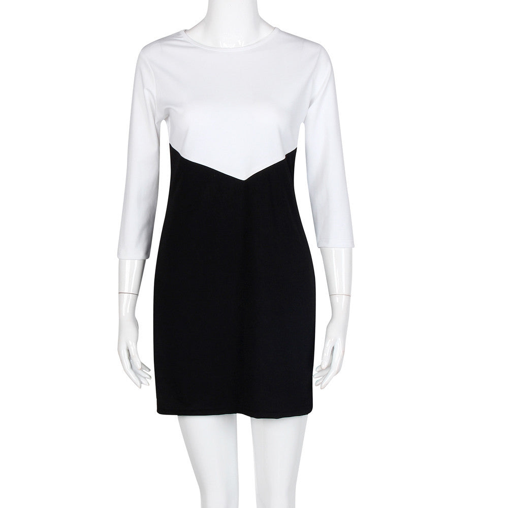 Women Casual Dress Half Sleeve Patchwork Straight Bodycon Bandage Mini Sexy Dress Vestidos Femininos IMY66