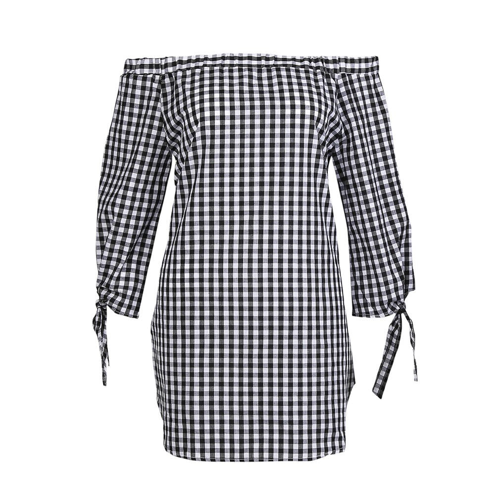Women Casual Dress Sexy Off Shoulder Plaid Short Party Beach Tops Mini Dress vestidos femininos IMY66