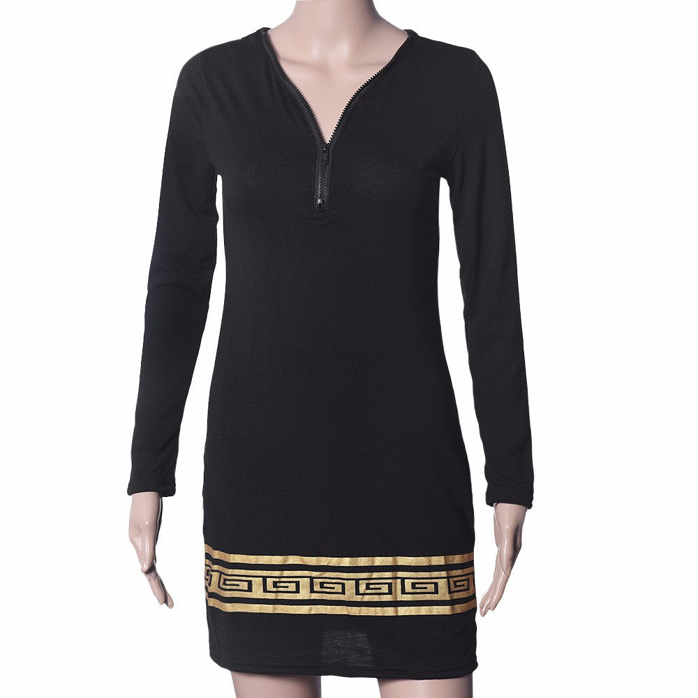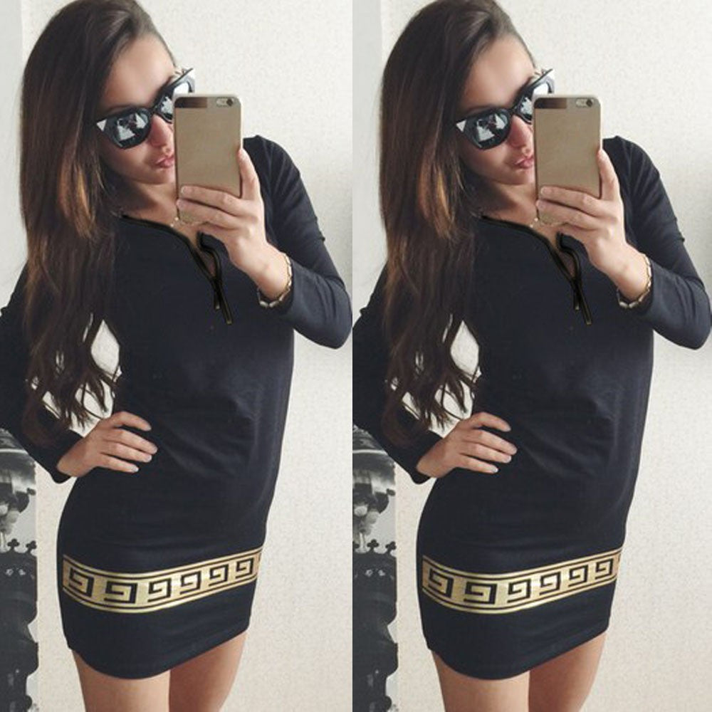 Women Casual Dresses Sexy Printed V Neck Zip Long Sleeve Dress Party Bandage Bodycon Mini Dress vestido de festa IMY66