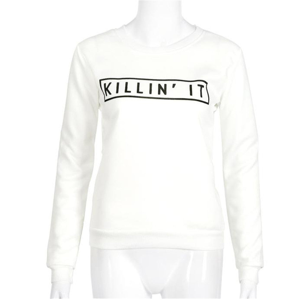 Women Casual Hooded Sweatshirt Hoodie Letter Print Long Sleeve Loose T-Shirts Tee shirts Tops camisetas y tops IMY66