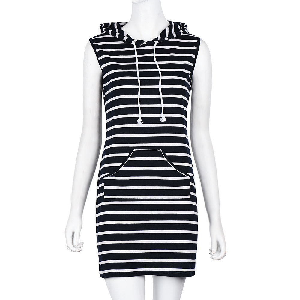 Women Casual Hoodies Dress Ladies Sleeveless Sweatshirt Suits Tracksuit femme swear Dress IMY66