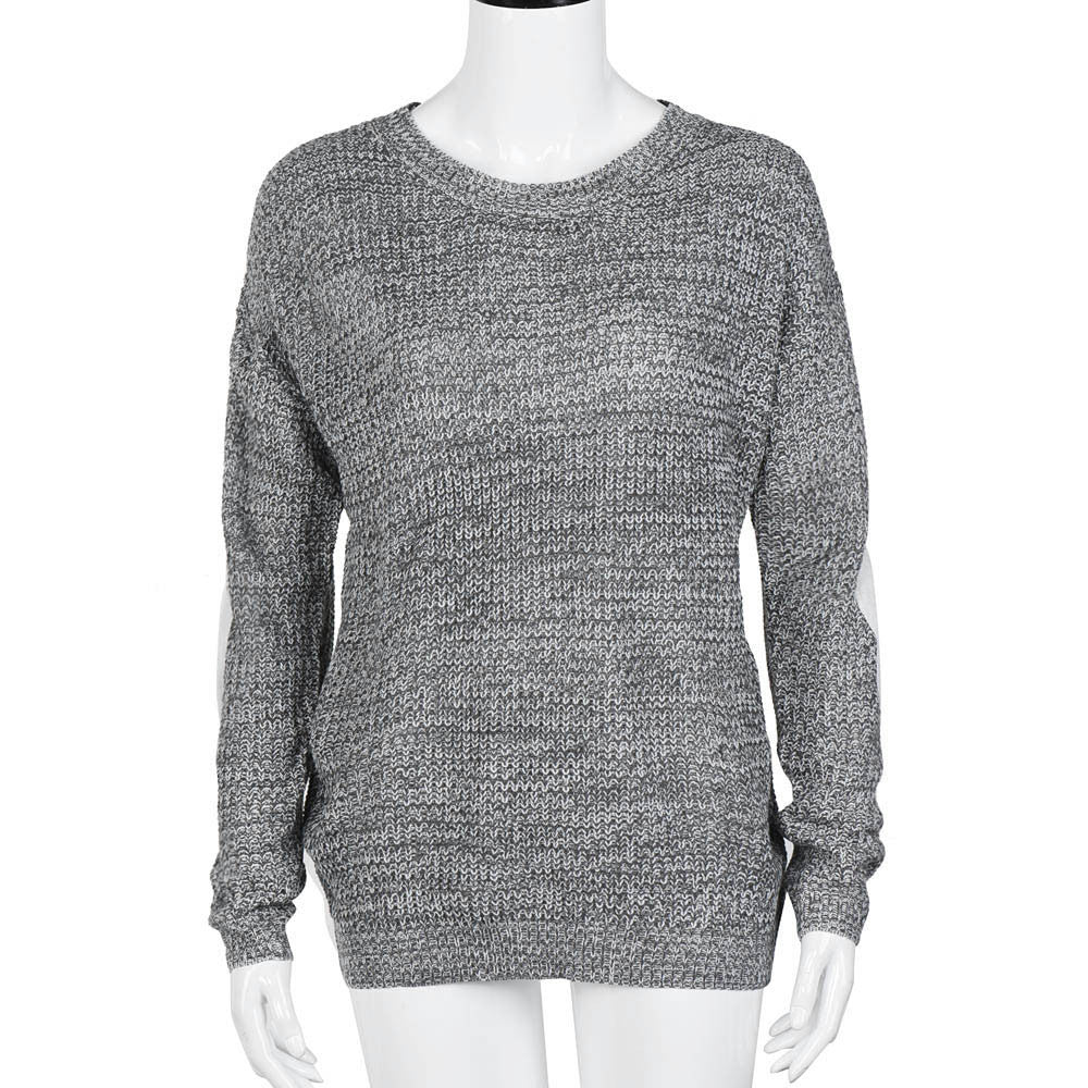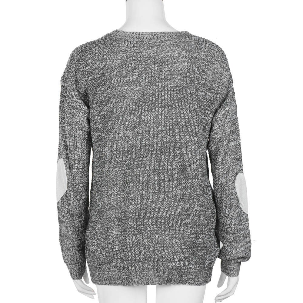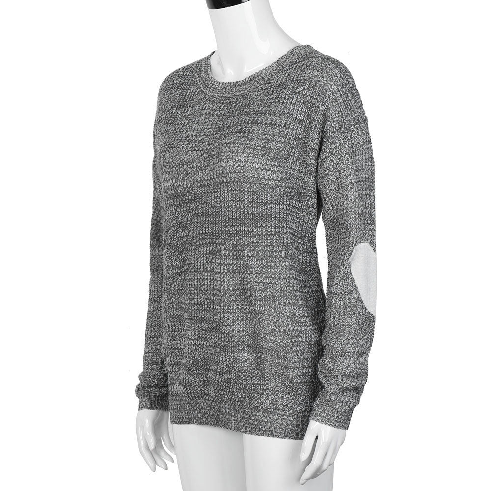 Women Casual Knitted Sweater Hearted Patch Sleeve Loose Jumper Knitwear Pullovers pull femme IMY66