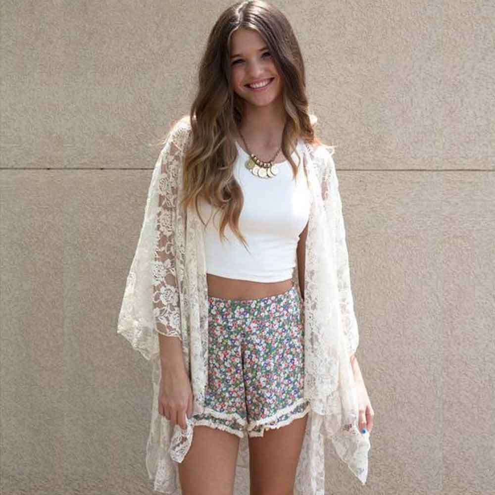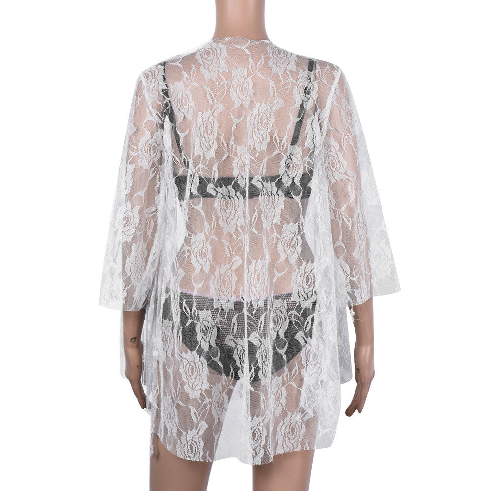 Women Casual Lace Blouse Elegant Lace Loose Shirt Kimono Cardigan Sunscreen Tops Bikini Cover up IMY66