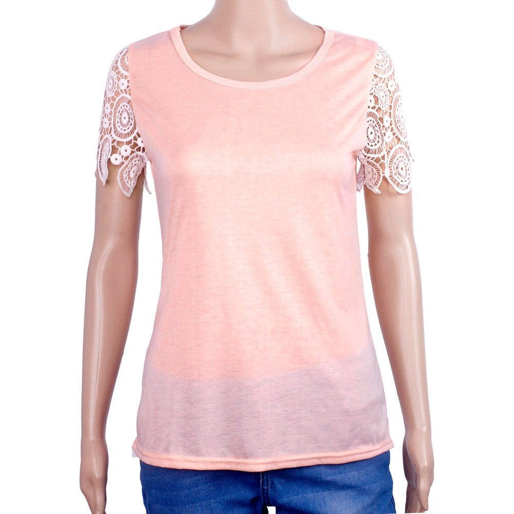 Women Casual Lace CrocheT-Shirt Tops Female Women Ladies Lace Short Sleeve Cotton Blouse Lace Blusas IMY66