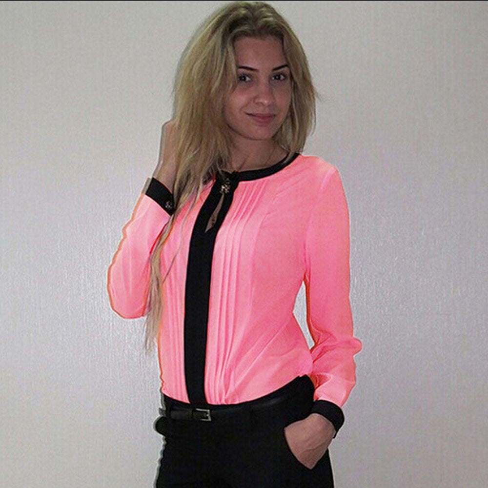Women Casual Loose Chiffon Pleated Blouse Patchwork Office OL Long Sleeve Shirt Blouse Top roupas femininas IMY66
