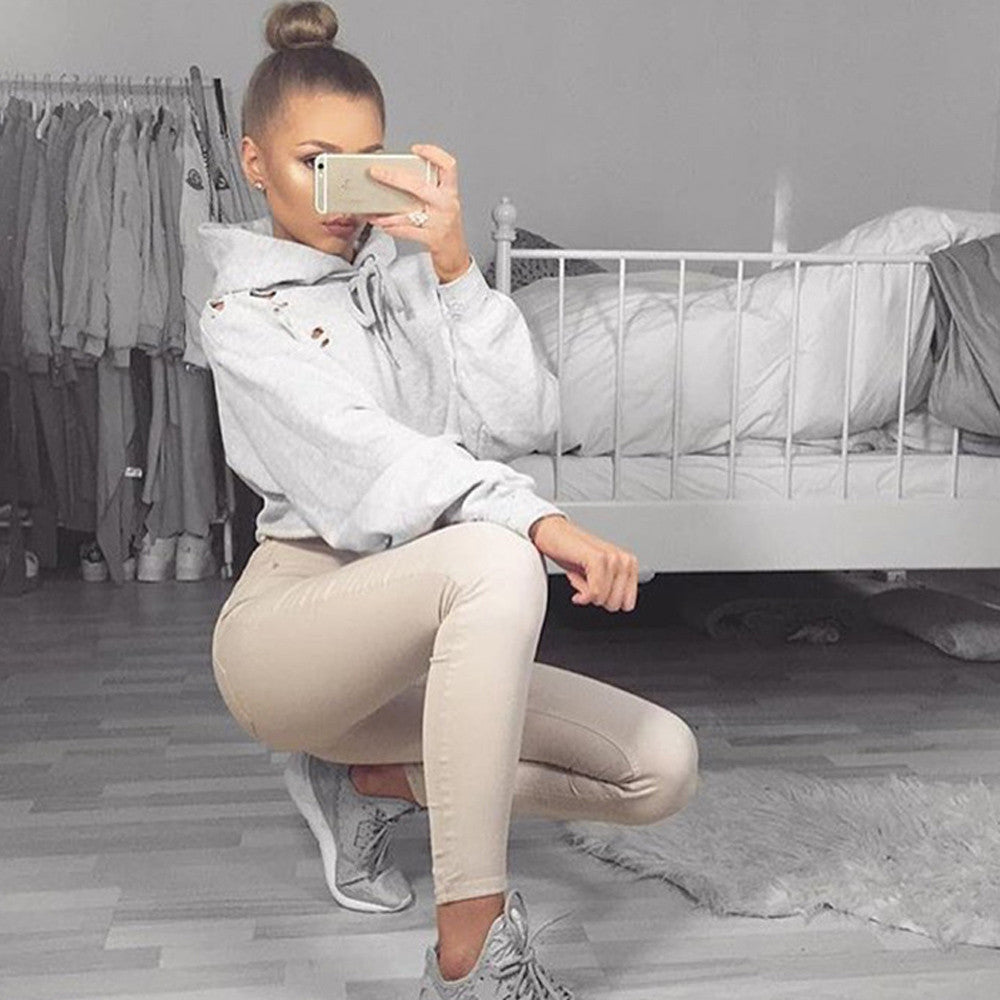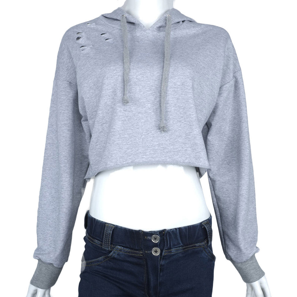 Women Casual Short Hoodie Sweatshirt Jumper Crop Tops Pullover Loose Long Sleeve Hole Tee Shirts femme camisetas y tops IMY66