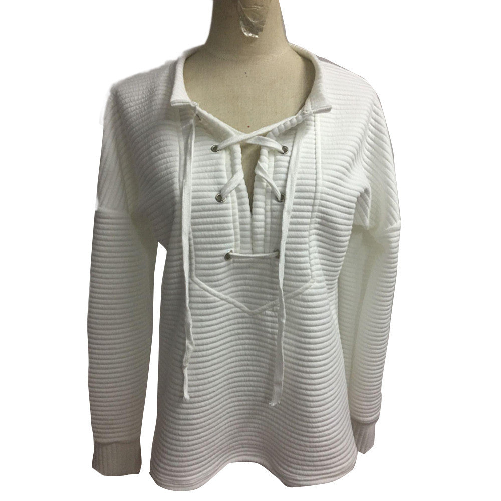 Women Casual T-Shirts Lace Up V Neck Long Sleeve Jumper Pullover Tops T-Shirts camiseta feminina tee shirt femme IMY66