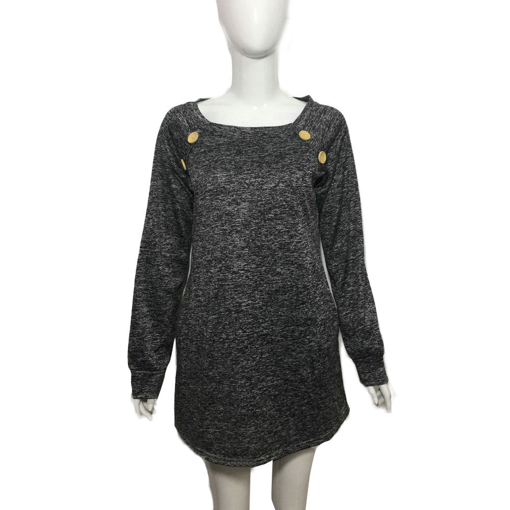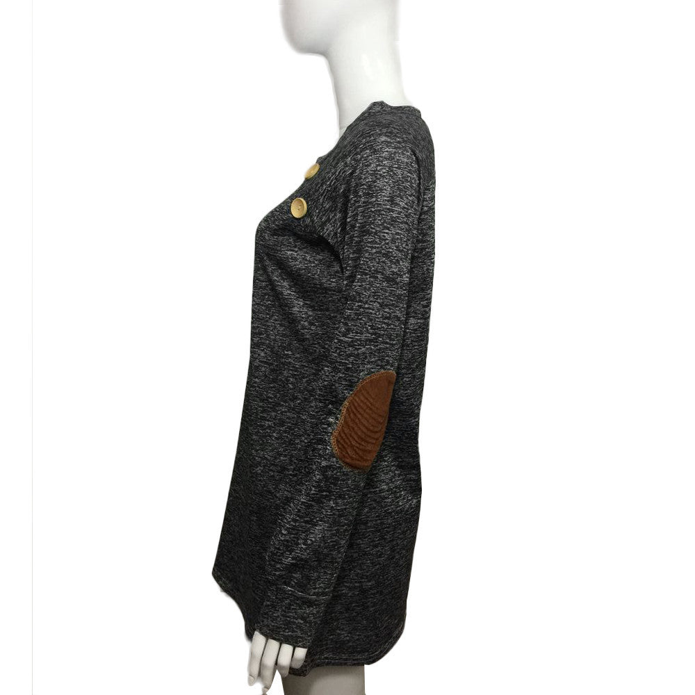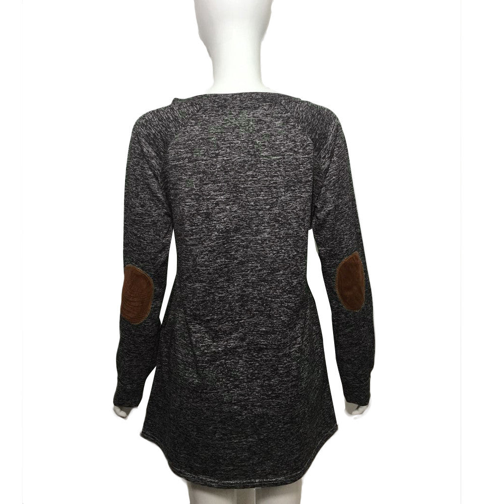 Women Casual T-Shirts Lady Long Sleeve Round Neck Button Elbow Patch Long Sleeve tee shirt femme camisetas mujer IMY66