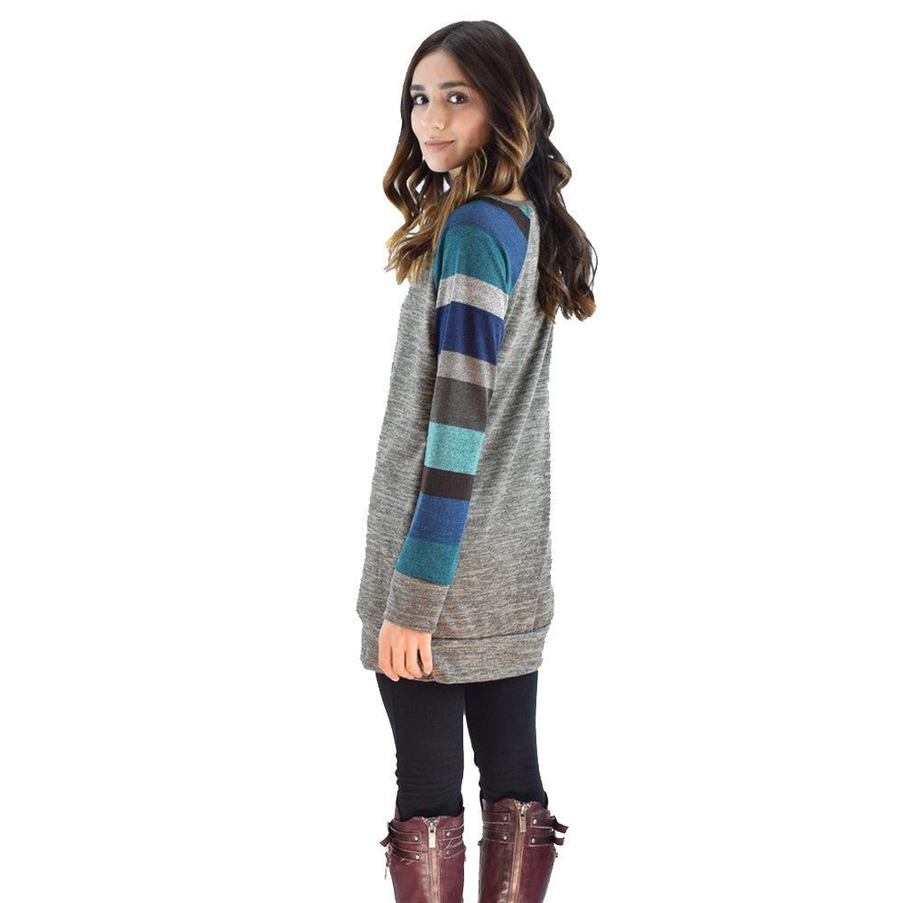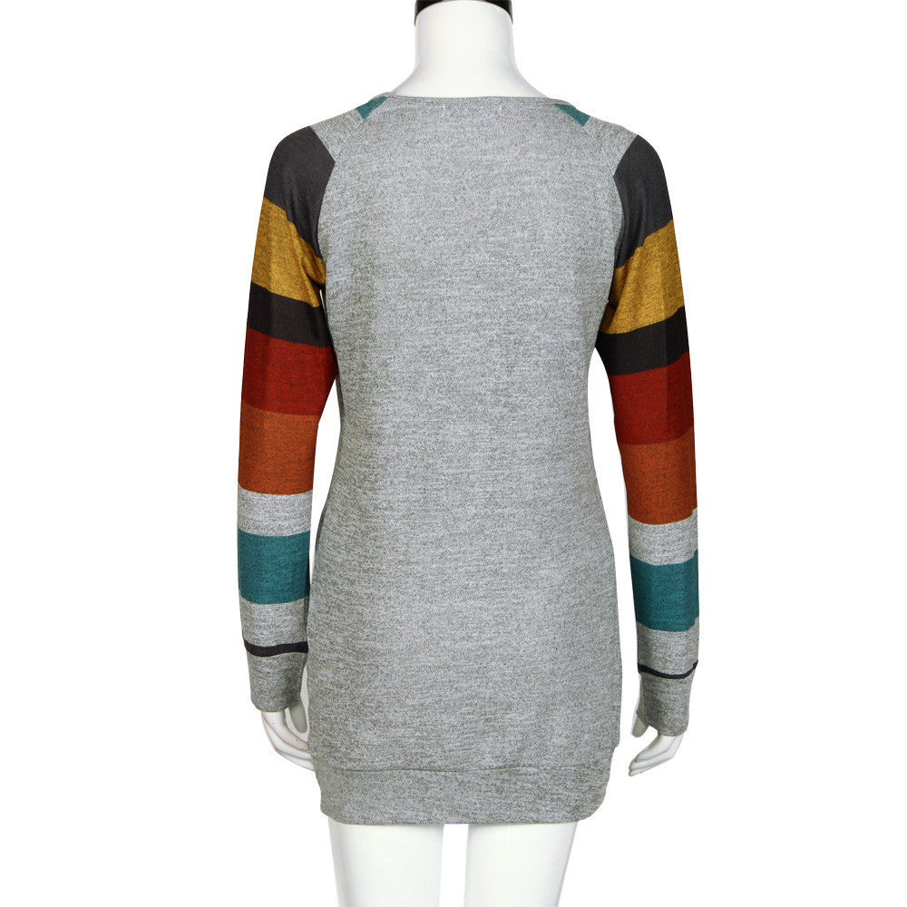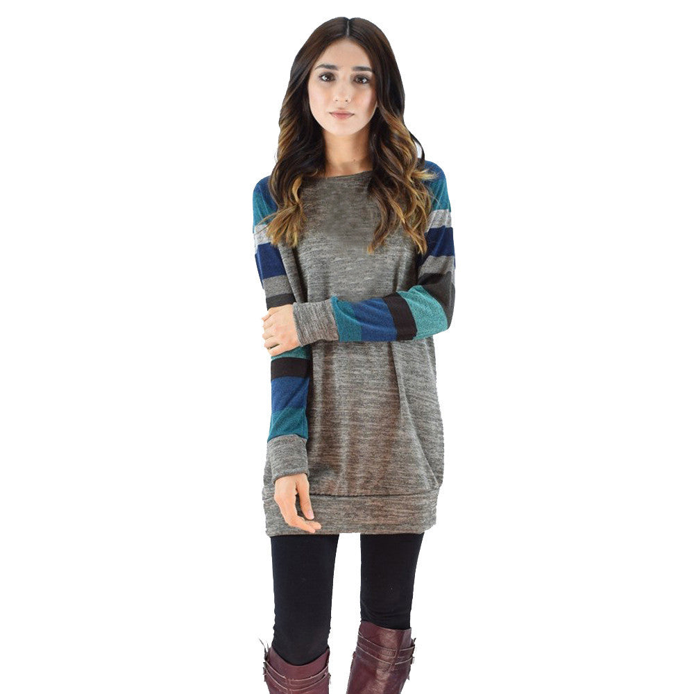 Women Casual T-Shirts Loose Striped Splice O-Neck Long Sleeve Long Tops Tee shirt femme camisetas y tops IMY66