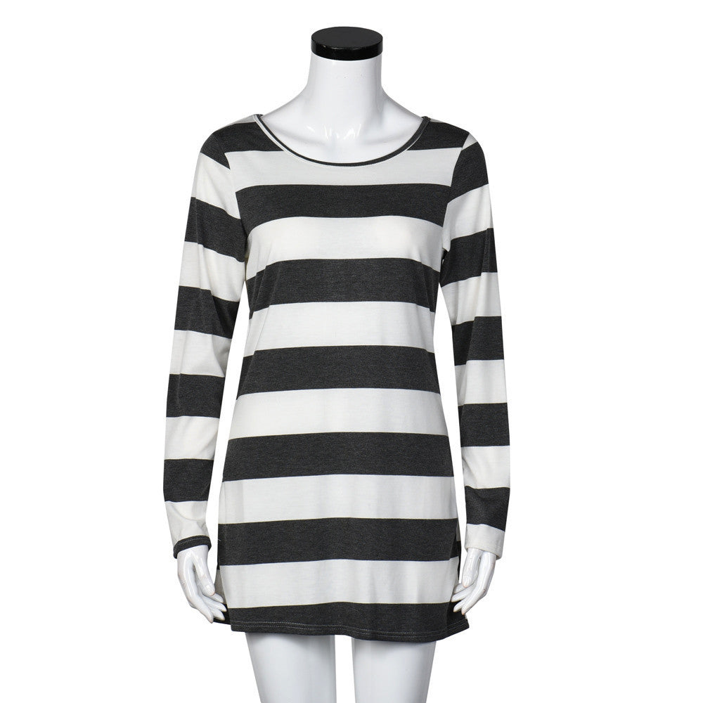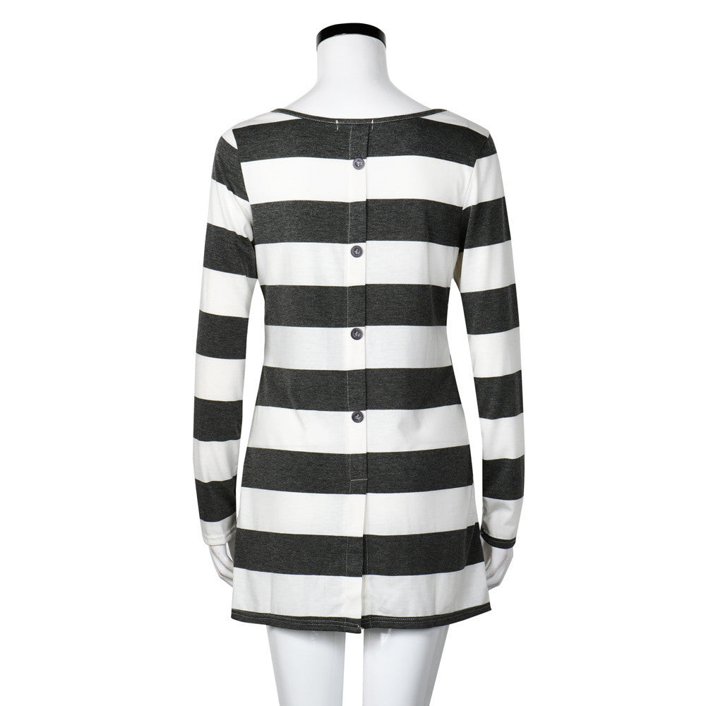 Women Casual T-Shirts Striped Button Round Neck Loose Long Sleeve Pullover Tee Shirts camisetas y tops Female IMY66