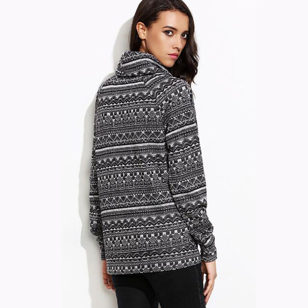 Women Casual T-Shirts Sweatershirts Long Sleeve Printed Turtleneck Tops Tee Shirt femme Camisetas Feminina IMY66