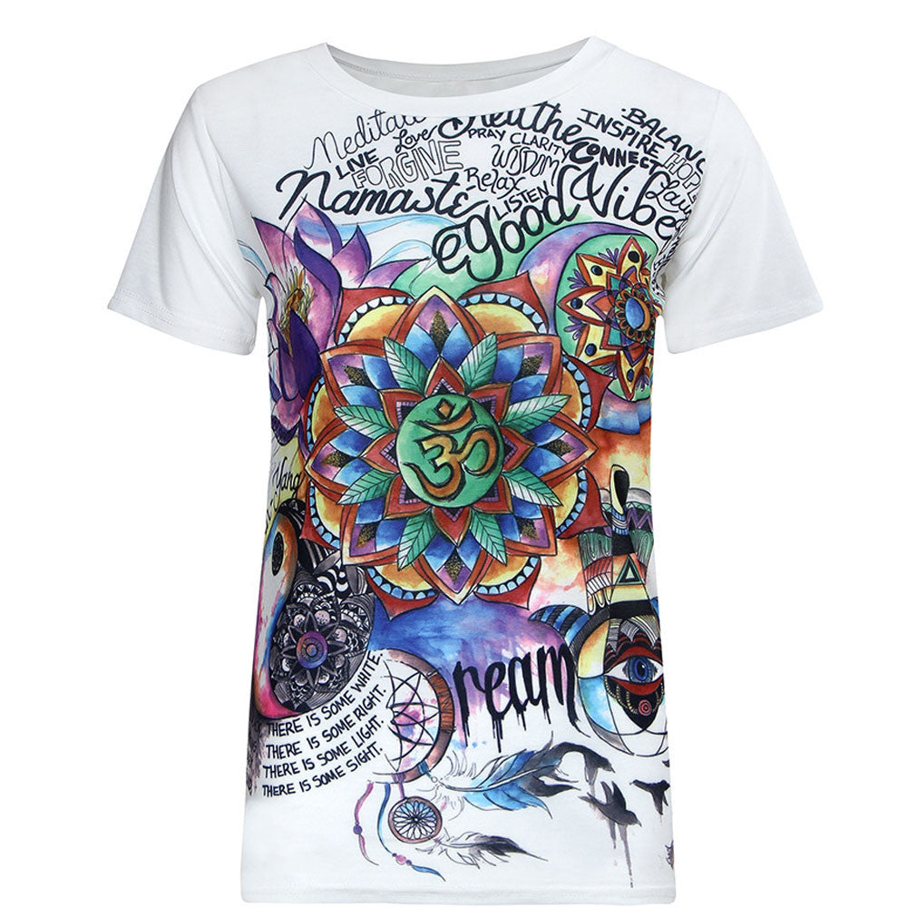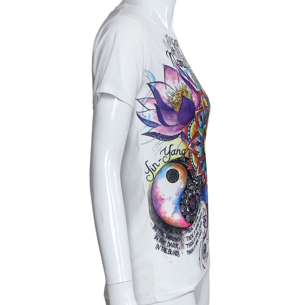 Women Casual T-Shirts Totem Printed O-neck Short Sleeve Tops Loose Tees Shirt Female harajuku IMY66