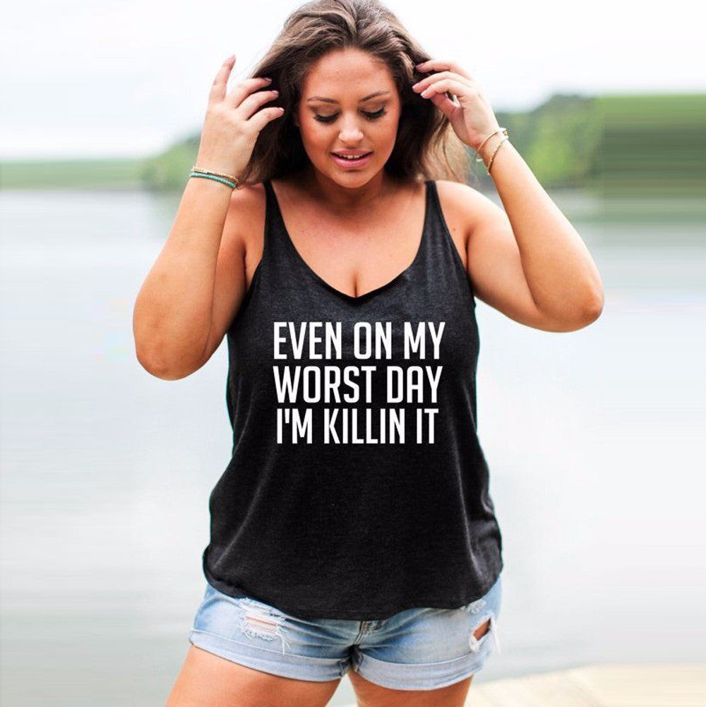 Women Casual Tank Tops Ladies Sexy Letter Print Sleeveless T-Shirt blusas feminino Big Size Black IMY66