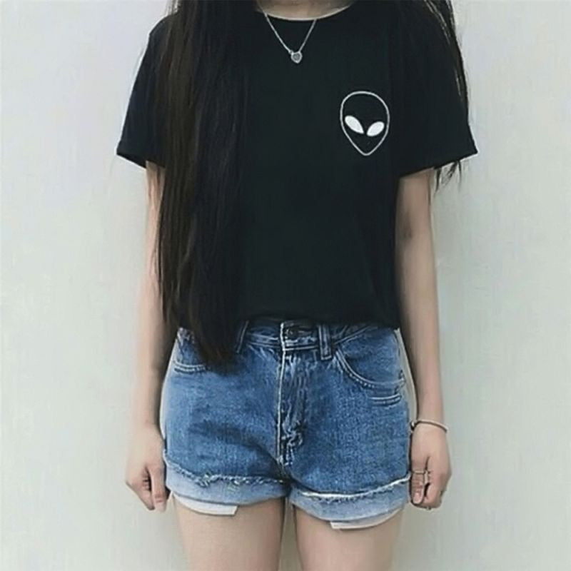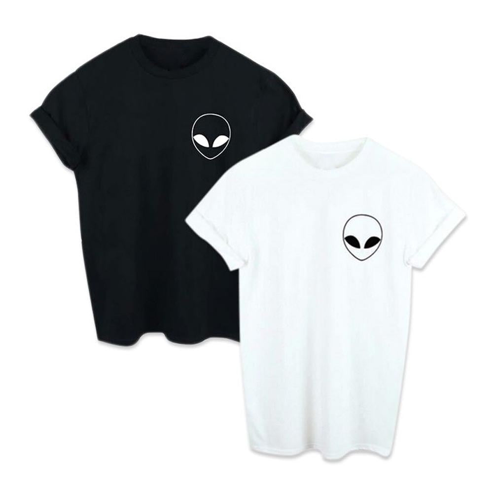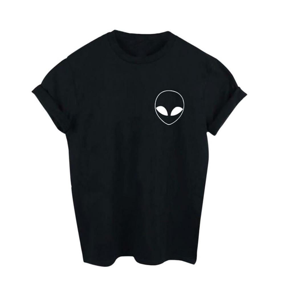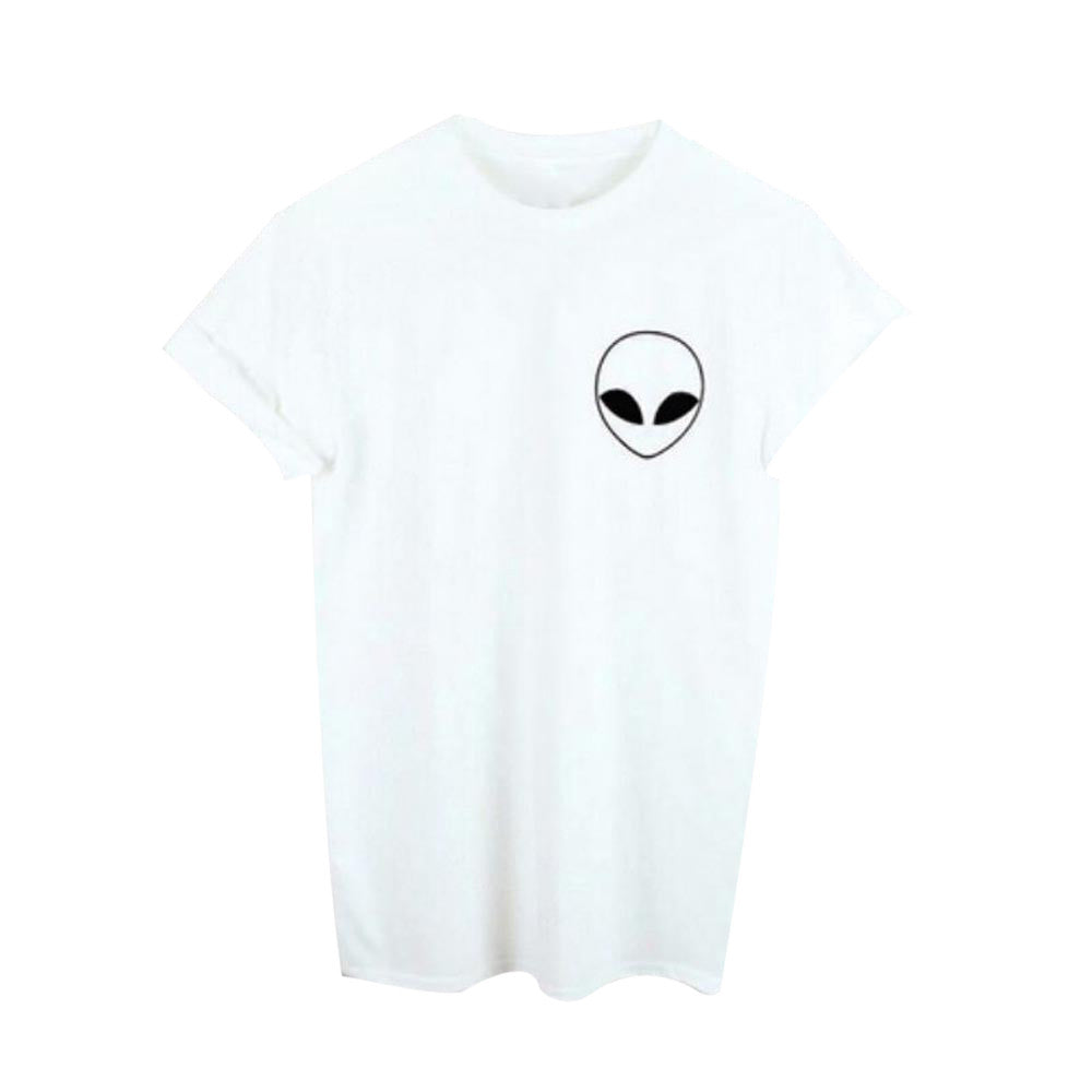 Women Casual Tee Shirt Funny Alien Printed Short Sleeve T-Shirt Loose Cotton Shirt Tops female IMY66