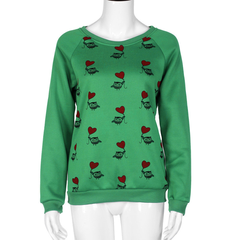 Women Casual Tee Shirts Long Sleeve O Neck Owl Print T-Shirt Tops Shirt T-Shirt femme camiseta mujer IMY66